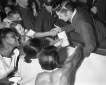 Der amerikanische Fernsehsender „American Broadcasting Company (ABC)“ hat Elvis Presley in einer Liste mit dem Titel „Teen Pop Stars Of The Past“ an erster Stelle genannt und als erstes großes Teenie-Idol der Musikgeschichte gewürdigt. Hinter Elvis rangieren die „Beatles“, Davy Jones von der Gruppe „The Monkees“ und Michael Jackson auf den weiteren Plätzen. Als Foto zur Illustration verwendete „ABC“ nebenstehend abgebildeten Schnappschuss aus Elvis’ 1962er Erfolgs-Spielfilm „Girls! Girls! Girls!“ und bezeichnete es als „Undated Photo“ (dt. „Undatiertes Foto“) von einem Elvis-Auftritt. Nun, hier hätte die Redaktion gerne jemanden fragen dürfen, der sich mit so was auskennt..., doch nichtsdestoweniger ist die beschriebene Nennung und Würdigung des King selbstverständlich eine feine Sache! Datum: 1. Juli 2012 – Quelle: American Broadcasting Company (ABC) |