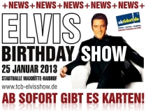 Etwas später als ursprünglich geplant hat der „Elvisclub Bayern“ am gestrigen Dienstag, dem 24. Juli 2012, mit dem Kartenvorverkauf für das Bayern-Gastspiel der 2013er Europa-Tournee von „Elvis’ 78th Birthday“ begonnen. Die Karten für die Show mit Elvis’ originaler „TCB Band“, Elvis’ Begleitchor „Elvis’ Imperials“, Elvis-Interpret Dennis Jale und Elvis’ Road-Manager Joe Esposito als ‚Special Guest’ in der Stadthalle in Maxhütte-Haidhof (bei Regensburg) am Freitag, dem 25. Januar 2013, ab 20.00 Uhr kosten zwischen 49,- und 19,- Euro und sind erhältlich bei allen Vorverkaufsstellen des örtlichen Unternehmens „OK Ticket“ im Großraum Regensburg/Bayreuth/Bamberg und bundesweit im Internet unter www.okticket.de. Datum: 25. Juli 2012 – Quellen: OK Ticket, Fanclub „Elvisclub Bayern“ |