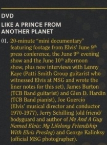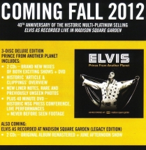 Bereits jetzt hat Elvis’ Plattenfirma „Sony Music“ mit der Bewerbung der für Ende September 2012 zur Veröffentlichung angekündigten sensationellen neuen Buch-/CD-/DVD-Kombination „Prince From Another Planet“ zu Elvis’ 1972er New York-Konzerten im „Madison Square Garden“ begonnen... und dabei quasi klammheimlich eine Überraschung aus dem Hut gezaubert: Neben dem genannten Set bestehend aus einem 48-seitigen Buch bzw. Booklet, zwei CDs mit den bekannten aber klangtechnisch überarbeiteten Samstag-Konzerten vom 10. Juni 1972 und einer DVD u. a. mit unveröffentlichten Fernsehaufnahmen aus dem Freitag-Konzert vom 9. Juni 1972 wird es nur die beiden CDs auch noch mal als separate Doppel-CD-Ausgabe in der „Legacy“-Reihe geben (s. Werbeanzeige). Der frühe und intensive Bewerbungsstart ebenso wie die aufwendige Gestaltung des Projekts zeigen, wie wichtig „Sony“ diese Veröffentlichung(en) nimmt. Umso trauriger ist es da, dass man den optimalen Veröffentlichungszeitpunkt für beide Produkte glatt verschlafen hat, der natürlich im Juni 2012 gelegen hätte, als Elvis’ triumphales Konzert-Wochenende in New York sein 40-jähriges Jubiläum feierte. Datum: 28. Juli 2012 – Quelle: Sony Music |