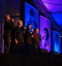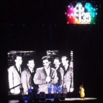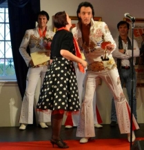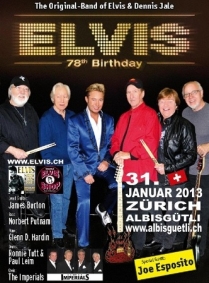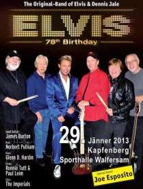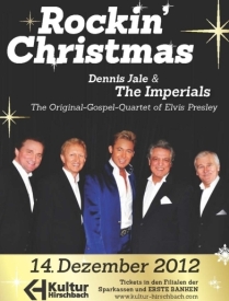 Zu einem großen Erfolg sind die drei Vorweihnachtskonzerte „Rockin’ Christmas“ geworden, die der österreichische Elvis-Interpret Dennis Jale mit seiner Band „The Jam Gang“ sowie Elvis Presleys originalem Begleitchor der späten 60er und frühen 70er Jahre „The Imperials Quartet“ (heute: „Elvis’ Imperials“) am vergangenen Wochenende in Österreich durchgeführt hat. Alle drei Shows, eine im „Kulturwerkstatt-Vereinssaal“ in Hirschbach und zwei im „Metropol Theater“ in Wien, waren ausverkauft und boten beste Unterhaltung, zumal nicht nur Christmas- und Gospel-Songs des King sondern auch guter alter Elvis-Rock’n’Roll dargeboten wurden. „Elvis’ Imperials“ hatten in ihrer aktuellen Besetzung mit den Elvis-Originalen Terry Blackwood und Joe Moscheo sowie den neueren Mitgliedern Lynn Royce Taylor und Darrell Toney an den Konzerten mitgewirkt. Datum: 19. Dezember 2012 – Quelle: Fanclub „The Austrian Dennis Jale Fanclub“ |