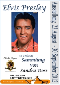 Der belgische Fanclub „Elvis Matters“ verstärkt zusehends seine Initiativen, auf dem deutschen (Elvis-)Markt Fuß zu fassen. Am gestrigen Sonntag, dem 8. Juli 2012, hat der Club in enger Zusammenarbeit mit dem szenebekannten bayrischen Elvis-Aktivisten und Elvis-Memorabilia-Sammler Markus Henfling, der bereits seit geraumer Zeit die Farben von „Elvis Matters“ in Deutschland vertritt, in der Kleinstadt Zeulenroda-Triebes in Thüringen eine neue und hervorragend bestückte Elvis-Ausstellung eröffnet. Die Ausstellung trägt den Titel „Elvis Forever And Entertainment“ und zeigt zahlreiche Kleidungsstücke, Schmuckstücke, Dokumente und Instrumente aus Elvis’ früherem Besitz. Dazu kommen Schallplatten, Fotos und andere Gegenstände, die an den King of Entertainment erinnern. Doch wie schon der Ausstellungstitel andeutet, werden neben den interessanten und wertvollen Elvis-Memorabilia auch einige Exponate anderer großer Stars gezeigt wie James Dean, Barbra Streisand, Tom Jones und Cher. „Elvis Forever And Entertainment“ ist zu sehen im „Städtischen Museum“ in der Aumaische Straße 30 - 32 in 07937 Zeulenroda-Triebes im Thüringer Vogtland an der Grenze von Thüringen zu Sachsen. Die Ausstellung läuft noch bis zum 2. September 2012. Die Öffnungszeiten sind dienstags, mittwochs und freitags von 9.00 bis 16.00 Uhr, donnerstags von 9.00 bis 18.00 Uhr sowie sonntags von 13.00 bis 16.00 Uhr. Datum: 9. Juli 2012 – Quellen: Fanclub „Elvis Matters“, Markus Henfling |