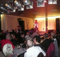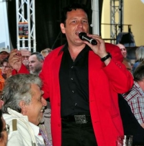Einen Pakt mit Petrus scheint Kay Passmann von der Kölner Agentur „La Colonia Promotions“ in diesem Jahr nicht geschlossen zu haben: Wie schon am 6. Mai 2012 beim ersten diesjährigen Oldies-Event „Petticoats und Cadillacs“ in Bergisch Gladbach war auch die zweite Veranstaltung der Reihe am gestrigen Sonntag, dem 8. Juli 2012, in Köln von ungünstigen Wetterbedingungen beeinträchtigt. Diesmal kam es sogar noch schlimmer, denn sintflutartige Regenfälle sorgten am Morgen zunächst dafür, dass sowohl kaum Besucher in das traditionsreiche Wirts- und Brauhaus „Gaffel am Dom“ kamen als auch dafür, dass rund um die Location im Herzen der Domstadt weniger Oldtimer aufgefahren waren als geplant. Dass es letztlich aber doch noch zu einer gelungenen Veranstaltung kam, lag einerseits am Durchhaltewillen von Passmann und andererseits daran, dass sich das Wetter im Laufe des Tages dann doch noch etwas beruhigte. Nachdem sich bis 12.00 mittags das eine Stunde zuvor noch gähnend leere „Gaffel am Dom“ doch recht gut gefüllt hatte, eröffnete Lokalmatador, Country-Sänger und Elvis-Interpret Lutz Lager in gewohnter Manier das Programm (oberes Foto). Zum Top-Act der Veranstaltung geriet einmal mehr der Auftritt der Rock’n’Roll- und Elvis-Cover-Band „The Rocking Maniacs“, die erneut in großer Besetzung (Sänger plus Band plus zwei Back-Up-Sängerinnen plus Bläsergruppe) nach Köln gekommen war und Songs wie „That’s All Right“, „Jailhouse Rock“ und „Viva Las Vegas“ derart gekonnt und dynamisch darbot, dass die Stimmung im am Nachmittag sich immer dichter füllenden großräumigen Saal des „Gaffel am Dom“ nostalgisch hoch kochte (zweites Foto). Auf reges Interesse der Besucher stieß auch ein ausführliches Interview, das Veranstalter Kay Passmann mit Peter Beines von „The King’s World (TKW)“ führte (drittes Foto), bei dem naturgemäß der 35. Todestag von Elvis Presley und die europäische Gruppenreise „Elvis 35th Memorial Tour“ zur „Elvis Week“ in Memphis im August 2012 im Mittelpunkt standen. Ein Überraschungsgast sorgte dann noch einmal für einen musikalischen Tribut an Elvis: Auf Empfehlung von „The King’s World“ war Elvis-Interpret Harry Johnson, am kommenden Sonntag auch beim „Elvis Circle“ („Elvis-Sommerfest 2012“) von TKW als Live-Act zu Gast, zusätzlich für „Petticoats und Cadillacs“ gebucht worden und ließ zu seinen Versionen einiger 50er und 60er Jahre-Hits von Elvis die Besucher erfreut das Tanzbein schwingen (viertes Foto). Draußen war es indessen wieder sommerlich trocken geworden, so dass die dort zu besichtigenden wunderschönen Cadillacs endlich die verdiente Aufmerksamkeit der Fans bekamen (unteres Foto). Und so wurde am Ende doch noch alles gut bei einem Event, das auf gelungene Art und Weise die 50er und 60er Jahre und viel Elvis wieder aufleben ließ. Datum: 9. Juli 2012 |