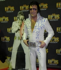 Elvis Presley SELBST ist und bleibt das Maß aller Dinge und der Mann, um den sich bei „The King’s World“ stets alles dreht. Die Beschäftigung mit seinen unzähligen Imitatoren findet bei uns zwar natürlich auch ihren Platz, wird sich aber auch künftig in maßvollen Grenzen halten. Dabei tragen wir heute der journalistischen Chronistenpflicht Rechnung und vermelden die neuesten Qualifizierten für den diesjährigen „Ultimate Elvis Tribute Artist Contest“ von Elvis Presley Enterprises (EPE) im Rahmen der bevorstehenden „Elvis Week“. Den Sprung in die Endrunde in drei Wochen in Memphis haben nunmehr auch geschafft William Stiles (Foto) als Sieger des „Harrah’s Elvis Tribute Artist Contest“ in Cherokee/North Carolina und Jerome Jackson als Sieger beim Vorrundenwettbewerb im Rahmen des „Elvis Tampa Bay Festival“ in Plant City/Florida. Datum: 28. Juli 2012 – Quelle: Elvis Presley Enterprises (EPE) |