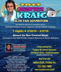 Die Erfolge verschiedener Kreuzfahrten mit Elvis-Showprogramm und Stargästen aus der Elvis-Welt – sei es die offizielle „Elvis Cruise“ von Elvis Presley Enterprises (EPE), die europäische „TCB Cruise“ von „Gullivers Reisen“ oder auch die „King Tribute Cruise“ in Australien – motivieren immer mehr Reiseunternehmen, ähnliche Veranstaltungen anzubieten. So wird das amerikanische Unternehmen „Cruises Inc.“ mit Sitz in Wynantskill/New York im kommenden Frühjahr 2013 eine Elvis-Kreuzfahrt unter dem Titel „Cruzin’ With Kraig – Elvis Fan Adventure“ durchführen, in deren Mittelpunkt mit Kraig Parker einer der bekanntesten Elvis-Imitatoren Amerikas steht. Der tatsächliche Stargast der Reise ist allerdings Elvis’ Konzertveranstalter der 70er Jahre Charles Stone, der als ‚Special Guest’ mit Interviews und Autogrammstunden das Programm bereichern soll, das sonst aus allabendlichen Shows mit Kraig Parker und seiner „Royal Tribute Band“ besteht. „Cruzin’ With Kraig – Elvis Fan Adventure“ wird mit dem Luxusliner „New Carnival Magic“ zwischen dem 10. und dem 17. Februar 2013 stattfinden und von Galveston/Texas über Key West/Florida auf die Bahamas und zurück nach Galeveston führen. Der Teilnahmepreis liegt je nach Kabine zwischen 934,- und 1279,- US-Dollar pro Person. Datum: 13. Dezember 2012 – Quellen: Cruises Inc., Charles Stone, Kraig Parker |