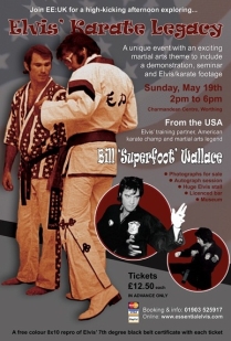 Der amerikanische Kampfsport-Spezialist, langjährige Kickbox-Weltmeister und Elvis-Karate-Trainingspartner Bill Wallace ist spätestens seit dem Jahr 2011 auch in Deutschland einem breiteren Publikum nicht nur unter Kampfsport-Freunden sondern auch unter Elvis-Fans bekannt. Seinerzeit hatte Bill Wallace, heute 67 Jahre alt und noch immer in großartiger körperlicher Verfassung, im Rahmen einer Seminar-Tournee auch in Koblenz gastiert, wo Peter Beines von „The King’s World“ ein ausführliches Interview mit dem Kampfsport-Ass und Elvis-Freund führen konnte, in dem sich der Mann aus Portland/Indiana in beeindruckender Weise über den Menschen, den Künstler und den Karate-Kämpfer Elvis Presley äußerte. Im kommenden Frühling nun wird Bill Wallace, der in der Szene den Beinamen „Superfoot“ trägt, wieder nach Europa kommen und als Stargast beim Event „Elvis’ Karate Legacy“ des britischen Fanclubs „Essential Elvis“ auftreten. Die Veranstaltung wird am Sonntag, dem 19. Mai 2012, ab 14.00 Uhr im „Charmandean Centre“ in der südenglischen Küstenstadt Worthing in der Grafschaft West Sussex stattfinden. Der Eintritt zu dem ungewöhnlichen Event, das aus Kampfsport-Demonstrationen von Bill Wallace sowie einer Autogrammstunde mit dem Kickbox- und Karate-Ass besteht, beträgt 12,50 Britische Pfund. Das „The King’s World“-Interview mit Bill Wallace vom September 2011 ist weiterhin nachzulesen im Link „Interviews“ hier auf unserer TKW-Internetseite. Datum: 18. Dezember 2012 – Quelle: Fanclub „Essential Elvis“ |