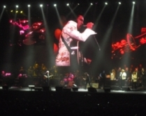Sehr gut läuft das Vorweihnachtsgastspiel von Elvis’ früherem weiblichen Begleitchor „The Sweet Inspirations“ mit Elvis-Interpret Bouke plus Band in Belgien und den Niederlanden unter dem Titel „Christmas With Elvis“. Das gestrige Konzert im „Zaal Vito“ in Mol/Belgien war zwar nicht ganz ausverkauft aber zumindest sehr gut besucht, und für die heutige Show im „Theater De Schalm“ in Veldhoven/Niederlande gab es bereits im Vorfeld keine Karten mehr. Die „Sweet Inspirations“, bei denen nach dem traurigen Ableben von Myrna Smith an Weihnachten vor zwei Jahren leider nur noch Estelle Brown (sitzend auf dem Foto) als Original-Mitglied aus den Elvis-Zeiten dabei ist, begeistern mit nach wie vor dynamischen und souligen Darbietungen, zu denen die jüngeren Mitglieder Portia Griffin (auf dem Foto links) und Kelly Jones (auf dem Foto rechts) einen wunderbaren Beitrag leisten. Umso bedauerlicher ist es, dass der veranstaltende belgische Fanclub „Elvis Matters“ das ursprünglich in der Stadthalle in Friedberg/Deutschland für den vorgestrigen Freitag, 21. Dezember 2012, vorgesehene dritte Konzert hatte absagen müssen. Datum: 23. Dezember 2012 – Quellen: Portia Griffin/The Sweet Inspirations, Fanclub „Elvis Matters“ |