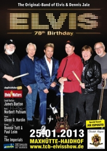 Einen sehr erfolgreichen Start hat die aktuelle Europa-Tournee „Elvis’ 78th Birthday“ in Dänemark und Norwegen erlebt. Die Shows mit Elvis’ „TCB Band“, Elvis’ männlichem Begleitchor „Elvis’ Imperials“ und dem österreichischen Elvis-Interpreten Dennis Jale in Randers/Dänemark am 10. Januar 2013 und in Oslo/Norwegen am 12. Januar 2013 waren jeweils ausverkauft, wobei die zwischenzeitliche Nachricht vom Tod des früheren Bandmitglieds John Wilkinson für eine besonders emotionale Stimmung sowohl in der Besetzung als auch bei den Besuchern gesorgt hatte. Nach einem weiteren Gastspiel am gestrigen Dienstagabend, dem 15. Januar 2013, in Mailand/Italien zieht die Tournee nun in Dennis Jales Heimat Österreich, wo ab morgen in Laa und in Wien insgesamt vier weitere Shows auf dem Programm stehen. Datum: 16. Januar 2013 – Quellen: Fanclub „Elvis Unlimited“, Fanclub „Flaming Star“, Dennis Jale |
