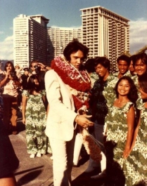 Die Reise des Königs nach Hawaii am 9. Januar 1973 Einen Tag nach seinem 38. Geburtstag flog Elvis Presley am Dienstag, dem 9. Januar 1973, von Los Angeles aus mit einer gecharterten „Boeing 747“ nach Hawaii, wo er nachmittags am „Honolulu International Airport“ ankam, um das spektakulärste Projekt seiner gesamten Karriere durchzuführen, das Fernseh-Live-Konzert „Elvis Aloha From Hawaii Via Satellite“. In Elvis’ Begleitung befanden sich Vater Vernon Presley, Freundin Linda Thompson, Road-Manager Joe Esposito, Security-Chef Dick Grob und die Leibwächter-Truppe um Red und Sonny West, während der musikalische Helfer Charlie Hodge und die Stammbesetzung der Elvis-Konzerte jener Zeit bestehend aus der „TCB Band“ (James Burton/Leadgitarre, John Wilkinson/Rhythmusgitarre, Jerry Scheff/Bass, Ronnie Tutt/Schlagzeug und Glen Hardin/Piano), den Begleitchören „The Sweet Inspirations“ und „J. D. Sumner & The Stamps Quartet“, der Sopran-Begleitsängerin Kathy Westmoreland sowie Joe Guercio und seinem Orchester bereits einige Tage zuvor auf die Pazifik-Inseln gereist waren. Im Gepäck hatte Elvis den nagelneuen „Aloha Eagle Suit“, ein prächtiges weißes (genauer gesagt elfenbeinfarbenes) einteiliges Kostüm mit unzähligen roten und blauen Glassteinen sowie goldenen Sternen und Nieten, die zusammen insgesamt 11 große und kleine amerikanische Adler auf dem hellen Grund skizzierten. Zu dem Kostüm gehörten auch ein passender breiter Ledergürtel, ein blau gefüttertes Cape, ein riesiges so genanntes ‚Walking Cape’ und ein ganzer Stapel von weißen, blauen und roten Schals. Auf Hawaii warteten bereits TV-Produzent Marty Pasetta und sein Stab sowie Elvis’ Manager ‚Colonel’ Tom Parker auf den King. Parker hatte schon im Vorjahr 1972 das TV-Spektakel ausgedacht und organisiert. Am Flughafen stieg Elvis in einen Hubschrauber um, der kurze Zeit später auf dem „Ilikai Heliport“ am Waikiki-Strand landete, wo für Elvis und seine Entourage ein komplettes Stockwerk im „Hilton’s Hawaiian Village Hotel“ reserviert war. Bei der Landung bereiteten rund 1000 begeisterte Fans dem sehnsüchtig erwarteten Champion einen jubelnden Empfang. Elvis dankte es seinen Anhängern, indem er sich viel Zeit zum Bad in der Menge nahm und sogar dem regionalen Radio-Moderator Tom Moffat ein kurzes Interview gab, ehe ein roter Jeep den King in sein Domizil brachte. (Fortsetzung folgt). Datum: 9. Januar 2013 – Quellen: Diverse |