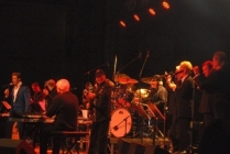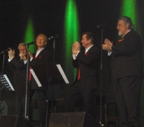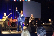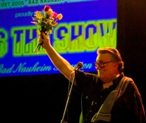 Ein überaus gelungenes Bayern-Gastspiel erlebte die Europa-Tournee von „Elvis’ 78th Birthday“ am gestrigen Freitagabend, dem 25. Januar 2013, beim Konzert in der „Stadthalle“ in Maxhütte-Haidhof bei Regensburg. Nachdem die nach Vorverkaufsende übrig gebliebenen rund 70 Tickets an der Abendkasse auch noch weggegangen waren, füllten etwa 850 Besucher die so am Ende doch noch ausverkaufte Location. Vor Show-Beginn deckten sich die Fans im Foyer der „Stadthalle“ am Verkaufsstand des belgischen Fanclubs „Elvis Matters“ mit Elvis-Artikeln aller Art ein und konnten dort auch das ebenfalls vor Ort anwesende und allseits sehr freundlich aufgenommene Team von „The King’s World“ treffen, ehe um kurz nach 20.00 Uhr mit der offiziellen Begrüßung des Publikums durch Organisator Wolfgang Zapke vom örtlichen Veranstalter „Elvisclub Bayern“ und einer Anmoderation von ‚Special Guest’ Jerry Schilling das knapp zweistündige Konzert begann. Die folgende Darbietung lebte vor allem von drei herausragenden Komponenten: Erstens einem glänzend aufgelegten Sänger Dennis Jale, der unter Beweis stellte, dass er über die Jahre hinweg zu einem Vollblut-Entertainer geworden ist, dessen Auftrittsstil eine perfekte Mischung darstellt aus ehrlichem Tribut an Elvis, gekonntem Zusammenwirken mit dessen alten Musikern und Begleitsängern und eigenständiger Performance (oberes Foto)... zweitens dem fantastischen Gospel-Intermezzo von „Elvis’ Imperials“, die für den Vortrag von „Sweet, Sweet Spirit“, „Why Me, Lord?“ und „How Great Thou Art“ stehende Ovationen erhielten (mittleres Foto)... und drittens der zwar nicht mehr originalgetreuen aber nichtsdestoweniger interessanten heutigen ‚Mannschaftsaufstellung’ von Elvis’ „TCB Band“ mit zwei Schlagzeugern (Ronnie Tutt plus Paul Leim) und dem wieder brillanten Norbert Putnam am Bass (eigentlich ein Studio-Musiker von Elvis, s. unser aktuelles TKW-Interview mit Norbert). Bemerkenswert zusammengestellt war auch das Song-Programm des Konzertes, in dem es nach dem erwarteten Beginn mit „See See Rider“ und bestens bekannten Klassikern wie „Johnny B. Goode“, „The Wonder Of You“, „Polk Salad Annie“ und „Suspicious Minds“ auch feine Überraschungen gab wie „Promised Land“ und kühne Medleys wie „Steamroller Blues“/„Reconsider Baby“. Zwischendurch erschien immer wieder Jerry Schilling auf der Bühne, um in kurzen Monologen Biografisches, Witziges oder Aktuelles zum Thema Elvis Presley einfließen zu lassen. Und als unter großem Jubel der Fans die Show mit „Can’t Help Falling In Love“ zu Ende ging (unteres Foto), waren sich Besucher, Künstler, Gäste und Veranstalter einig, gemeinsam eine richtig schöne Zeit in Erinnerung an Elvis Presley, den King of Entertainment, verbracht zu haben. Datum: 26. Januar 2013 |