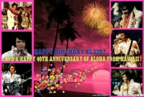 Heute vor 78 Jahren, am 8. Januar 1935, erblickte Elvis Aaron Presley in Tupelo/Mississippi das Licht der Welt. Weniger als 20 Jahre später begann er, mit seinen Liedern die Menschen zu begeistern, zuerst nur im Süden der USA, dann in ganz Amerika und schließlich überall auf der Erde. Die Faszination hält bis heute an, und so rufen wir dem King dort oben auf seiner Wolke zu: Happy Birthday Elvis! „The King’s World“ feiert den unsterblichen Jubilar mit einer großen Elvis-Geburtstags- und „Aloha-Anniversary“-Collage, die wir zusammen mit der großartigen italienischen Künstlerin Marilena Brienza von der Internetseite „The Wonder Of Elvis By Marilena“ für Elvis und für Sie, die treuen Fans des King, gestaltet haben. Danke Elvis! Datum: 8. Januar 2013 |