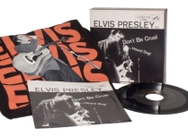 Elvis’ Plattenfirma „Sony Music“ wird in Kürze eine spezielle Vinyl-Neuauflage von einer der erfolgreichsten Elvis-Singles aller Zeiten herausbringen, nämlich der legendären Platte vom Juli 1956 mit der Doppel-A-Seite „Hound Dog“/„Don’t Be Cruel“, von der seinerzeit über 7 Millionen Exemplare verkauft worden waren. Die Neuauflage erfolgt weltweit als begleitende Veröffentlichung zur bereits angekündigten außergewöhnlichen CD-/T-Shirt-Kombination „Elvis Presley“ in der Reihe „Threads + Grooves“, über die wir bereits am 13. Januar 2013 an dieser Stelle berichtet hatten. Beide neuen Produkte, sowohl die Vinyl-Single als auch das CD-/T-Shirt-Set, werden am 12. Februar 2013 veröffentlicht werden. Noch unbekannt ist bislang die Cover-Gestaltung der Single-Neuauflage, so dass wir nebenstehend das Cover der historischen 1956er Ausgabe zeigen. Datum: 23. Januar 2013 – Quelle: Sony Music |