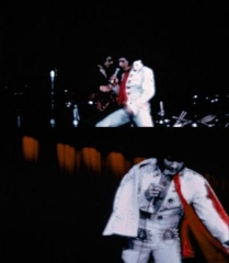 Eine sehr bemerkenswerte Sammlung von 140 bislang unbekannten Foto-Dias aus einem Elvis-Tournee-Konzert vom Sommer 1976 ist beim Internet-Verkaufsportal „Ebay“ unverkauft geblieben. Die in sehr gutem Zustand befindlichen Bilder stammen aus Elvis’ Show im mit 10 000 Fans ausverkauften „Civic Center“ in Springfield/Massachusetts vom 29. Juli 1976 und zeigen den King in seinem 1976 sehr häufig getragenen „White Pre-Historic Bird Suit“. Das Konzert hatte zum Sommerabschnitt von Elvis’ mehrteiliger großer „American Bicentennial Tour ’76“ gehört, mit der der King von März bis Dezember 1976 einen ganz persönlichen Beitrag zu den amerikanischen 200-Jahr-Feiern des Jahres 1976 leistete. Obwohl das Startgebot für die rare und sehr umfangreiche Foto-Sammlung mit 700,- US-Dollar (Sofortkauf-Option für 1000,- Dollar) sich in einem durchaus vertretbaren Rahmen hielt, ging etwas überraschend kein einziges Gebot auf die Kollektion ein. Vermutlich hatten sich Sammler davon abschrecken lassen, dass alle Bilder von dem Fan, der damals die Fotos geschossen und jetzt die Sammlung auch selbst bei „Ebay“ eingestellt hatte, den King und seine Begleitbesetzung aus relativ großer Entfernung zeigen, nämlich von der Tribüne auf der gegenüber der Bühne liegenden anderen Seite der Halle. Gespannt sein darf man nun darauf, ob der Besitzer der Foto-Sammlung diese demnächst noch ein zweites Mal bei „Ebay“ anbieten wird. Datum: 23. Juni 2013 – Quelle: Ebay |