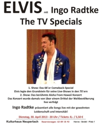 Am morgigen Samstag, dem 22. Juni 2013, findet wie angekündigt die nächste große Elvis-Tribut-Show unseres geschätzten langjährigen TKW-Stammgastes Ingo Radtke in München statt. Die Veranstaltung unter dem Titel „Elvis – The Concert Years 1969 - 1977“ wird drei separate Show-Blöcke (Teil 1: Jahre 1969 bis 1971, Teil 2: Jahre 1972 bis 1974, Teil 3: Jahre 1975 bis 1977) umfassen und soll den Zuhörern die Musik und die Atmosphäre ein wenig näher bringen, die Elvis in seiner großen Konzert-Ära den Fans darbot. Location von „Elvis – The Concert Years 1969 - 1977“ mit Ingo Radtke ist der angesagte Musik-Club „Groove Me“ in der Truderinger Str. 265 in 81825 München (Stadtteil München-Trudering). Einlass ist ab 20.00 Uhr, Karten zu Preisen von unter 10,- Euro gibt es an der Abendkasse. Datum: 21. Juni 2013 – Quellen: Ingo Radtke, Groove Me |