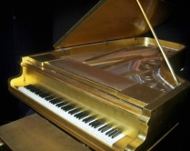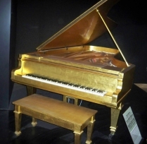 Erfolglos ist der Versuch des heutigen Besitzers von Elvis’ 1968er Gold-Klavier verlaufen, das einzigartige Instrument beim Internet-Verkaufsportal „Ebay“ für einen Millionenbetrag zu verkaufen. Offensichtlich war niemand bereit, das geforderte Startgebot von 3,5 Millionen US-Dollar für das Klavier einzubringen, das Priscilla Presley am 1. Mai 1968 ihrem Ehemann Elvis zum 1. Hochzeitstag geschenkt hatte und das in der jüngeren Vergangenheit in der „Country Music Hall Of Fame“ in Nashville ausgestellt gewesen war. Nun hat der Besitzer das Gold-Klavier nebst zugehöriger goldfarbener Sitzbank erneut bei „Ebay“ eingestellt. Wieder beläuft sich das Startgebot auf 3,5 Millionen Dollar, und wieder gibt es eine Sofortkauf-Option für 5,- Millionen Dollar. Der zweite Auktionsversuch des spektakulären Klaviers läuft bis zum 24. Juni 2013 und kann bei „Ebay“ hier angesehen werden. Datum: 18. Juni 2013 – Quelle: Ebay |