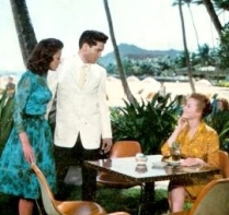 Der deutsche Fernsehsender „Kabel Eins Classics“, ein Pay-TV-Ableger des Privatsenders „Kabel Eins“, wird auch am morgigen Sonntag, dem 23. Juni 2013, wie schon so oft an Sonntagen in der jüngeren Vergangenheit wieder einen Elvis-Spielfilm zeigen, nämlich ab 11.05 Uhr „Blue Hawaii“ („Blaues Hawaii“). Der Streifen, der im März/April 1961 unter der Produktion von Hal Wallis und der Regie von Norman Taurog auf Hawaii für die Filmgesellschaft „Paramount“ gedreht und im November 1961 in die Kinos gebracht worden war, gilt als erfolgreichster Elvis Presley-Spielfilm überhaupt und als Prototyp des bunten Elvis-Musical-Films der 60er Jahre. Neben Elvis in der Rolle des singenden Fremdenführers Chad Gates spielten Joan Blackman und Nancy Walters (s. Szenenfoto) sowie Angela Lansbury die weiteren Hauptrollen. Neben dem Film an sich wurden auch die Soundtrack-Platten – das Album „Blue Hawaii“ und die Single „Can’t Help Falling In Love“/„Rock-A-Hula Baby“ – riesige Kassenschlager für den King. Datum: 22. Juni 2013 – Quelle: Kabel Eins Classics |