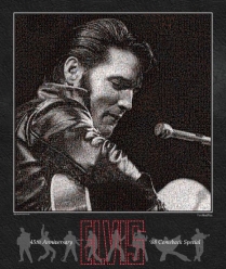 Nachdem die ersten beiden Elvis-Fan-Mosaike, die im August 2012 zum 35. Todestag des King und im Januar 2013 zum 40-jährigen Jubiläum von Elvis’ rekordträchtigem Fernsehkonzert „Aloha From Hawaii“ dank der Mitwirkung unzähliger Fans aus aller Welt große Erfolge geworden waren, haben Elvis Presley Enterprises (EPE) und die für die technische Umsetzung der Mosaike zuständige Firma „Fan Mosaics“ aus Northfield/Ohio einen neuen Zweijahres-Vertrag geschlossen. Die Vereinbarung besagt, dass bis 2015 mehrere weitere Elvis-Fan-Mosaike entstehen sollen und dass als nächstes ein Mosaik zum diesjährigen 45-jährigen Jubiläum von Elvis’ fantastischer 1968er Comeback-Fernseh-Show „Elvis“ geschaffen werden soll, die unter dem Begriff „Elvis’ ’68 Comeback Special“ in die Musik-Geschichte eingegangen ist. Das Hochladen von Bildern, aus denen das neue Mosaik so wie die vorherigen zusammengesetzt werden wird, soll schon in Kürze den Elvis-Fans rund um den Globus möglich gemacht werden. Datum: 25. Juni 2013 – Quelle: Fan Mosaics |