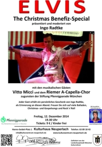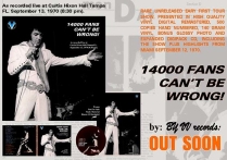 | Mit dem heutigen Silvestertag geht das Jahr 2014 zu Ende. Für die Fans von Elvis Presley waren es erneut zwölf Monate, die viele interessante, schöne und aufregende Ereignisse und Erlebnisse rund um den King hervorgebracht haben, wobei das Jahr besonders geprägt worden ist vom 60-jährigen Jubiläum von Elvis Presleys Karriere-Start im Show-Business mit der Aufnahme und der Veröffentlichung der Debüt-Single „That’s All Right“/„Blue Moon Of Kentucky“ im Juli 1954. Neue Elvis-Veröffentlichungen in jeder der zurückliegenden 52 Wochen, Elvis in den Medien, Elvis in den Hitparaden, Elvis bei Auktionen, Elvis in Ausstellungen... wieder einmal war der physisch seit Jahrzehnten verstorbene King of Entertainment lebendiger und präsenter als die meisten der noch lebenden Künstler! Ebenso lebendig ist das Jahr 2014 für unseren modernen Elvis-Fanclub „The King’s World (TKW)“ verlaufen. Eine Vielzahl kleinerer und auch größerer Elvis-Veranstaltungen unter unserer Federführung oder unserer Mitwirkung im Inland und im Ausland begeisterte die zahlreichen Besucher, die Zahl unserer Mitglieder (= registrierter Stammgäste) steigerte sich auf deutlich über 600 Menschen, die Besuche auf unserer Internet-Hauptseite wachsen noch immer, und bei „Facebook“ gelang uns das Kunststück, die Zahl der generellen „Gefällt mir“-Angaben (so genannte „Likes“) für unsere dortige „The King’s World“-Vetretung von rund 3000 auf über 9000 glatt zu verdreifachen – und das völlig ohne tägliche Reklame-Hilfe durch andere! TKW hat sich damit als einer der größten und aktivsten Elvis-Fanclubs im deutschsprachigen Raum und sogar in Europa weiter etabliert. Auf all dieses dürfen wir mit Recht stolz sein, doch vor allen Dingen ist der heutige letzte Tag des Jahres der Zeitpunkt, ganz herzlich DANKE zu sagen an ALLE, die im abgelaufenen Jahr einen seriösen, ernsthaften und ehrlichen Beitrag geleistet haben für das, was auch uns jeden Tag so sehr am Herzen liegt: Ein würdiges, stilvolles und lebendiges Andenken an den größten Entertainer aller Zeiten: ELVIS AARON PRESLEY! Datum: 31. Dezember 2014 |   | Der traurigste Aspekt auch des Jahres 2014 war wieder einmal der Abschied von leider vielen früheren Weggefährten und Mitstreitern Elvis Presleys. In den vergangenen zwölf Monaten verließen uns für immer Phil Everly, Ed Hookstratten, Gail Gerber, Emilio Muscelli, Casey Kasem, Bobby Womack, James Shigeta, Michael Hoey, Richard Kiel, Alfred Wertheimer (Foto), Alvin Stardust, Mary Ann Mobley, Millie Kirkham und Chip Young. Auch diesen Menschen gilt unser aufrichtiger Dank, nämlich für ihre Beiträge zur Kunst und Karriere Elvis Presleys oder für ihre offenherzige Bewunderung des King. Wir werden Euch vermissen. Ruhet in Frieden und grüßt Elvis im Himmel von uns! Datum: 31. Dezember 2014 |  | Noch keinerlei Mitteilungen zum Veröffentlichungsfahrplan für das große Elvis-Jahr 2015 hatte es bisher vom offiziellen Sammlerlabel „Follow That Dream Records (FTD)“ gegeben. Heute nun ist ein erstes neues Produkt angekündigt worden, das schon in Kürze veröffentlicht werden soll. Es handelt sich um ein neues Buch mit dem Titel „Rock Around The Bloch!“, das sich mit Elvis’ legendärem Benefizkonzert in der „Bloch Arena“ in Pearl Harbor/Hawaii am 25. März 1961 zugunsten des „USS Arizona Memorial“ beschäftigen wird. Verantwortliche des Buches werden die bewährten Kräfte David English (Text) und Pal Granlund (Fotos) sein, die schon in der Vergangenheit großartige Bücher unter der „FTD“-Flagge hervorgebracht hatten. Bei Produktion und Vertrieb von „Rock Around The Bloch!“ wird „FTD“ wieder mit dem norwegischen Traditions-Elvis-Fanclub „Flaming Star“ zusammenarbeiten. Weitere Details zu dem Projekt liegen noch nicht vor, werden aber gewiss sehr zeitnah folgen. Datum: 30. Dezember 2014 – Quellen: Fanclub „Flaming Star“, Elvis And His Music |  | Der bekannte amerikanische Verleger, Autor und Produzent Joseph A. Tunzi und sein in Chicago/Illinois beheimatetes Unternehmen „JAT Productions“ haben erstmals genauere Informationen zu ihren vor zweieinhalb Wochen noch recht vage angekündigten beiden neuen Elvis-Büchern gegeben. Das erste der beiden zur Publikation im Frühling 2015 vorgesehenen Werke wird den Titel „The Definitive Vinyl Artwork Of Elvis Presley 1956 - 1977“ tragen und in ausführlicher Weise den Cover-Gestaltungen von Elvis’ LPs, EPs und Singles und speziell den dafür verwendeten Elvis-Fotos gewidmet sein. Mit Hunderten von Cover-Abbildungen sowie den Fotos in den ungeschnittenen, unbearbeiteten Original-Versionen wird gezeigt werden, wie jeweils der Weg vom Original-Foto aufs Plattencover und die Einbindung des Bildes ins grafische Design war. „The Definitive Vinyl Artwork Of Elvis Presley 1956 - 1977“ wird als Hardcover-Buch mit noch nicht genannter Seitenzahl aufgemacht sein und 195,- US-Dollar (= ca. 160,- Euro nach heutigem Kurs) inklusive Porto und Versand kosten. Das zweite in Vorbereitung befindliche neue Werk von Joseph A. Tunzi und „JAT Productions“ wird ein weiteres Foto-Buch zu Elvis’ 70er Jahre-Konzerten sein und den Namen „Elvis Presley From St. Paul To Fort Wayne“ bekommen. Im Fokus dieses Buches werden Elvis’ Tournee-Konzerte im mit über 17 000 Fans jeweils ausverkauften „Civic Center“ in St. Paul/Minnesota am 2. und 3. Oktober 1974 sowie im mit 8500 Besuchern ebenfalls voll besetzten „Memorial Coliseum“ in Fort Wayne/Indiana am 25. Oktober 1976 stehen. Von diesen drei Konzerten werden insgesamt rund 120 bislang noch unveröffentlichte Fotos in dem Werk zu sehen sein, das ebenfalls als Hardcover-Buch mit noch ungenannter Seitenzahl gestaltet sein wird. „Elvis Presley From St. Paul To Fort Wayne“ wird für 114,95 US-Dollar (= ca. 94,30 Euro nach heutigem Kurs) inklusive Porto und Versand zu haben sein. Als Publikationstermin beider neuen Bücher ist der 1. März 2015 