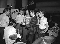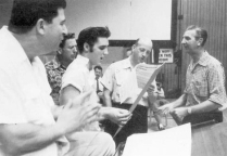 Aufnahme der Mega-Hit-Single „Hound Dog“/„Don’t Be Cruel“ am 2. Juli 1956 in New York Die doppelte Mega-Hit-Single „Hound Dog“/„Don’t Be Cruel“ gehört zu den erfolgreichsten und wichtigsten Platten in der gesamten Karriere Elvis Presleys. Die Aufnahme der beiden Lieder am 2. Juli 1956 in New York beschäftigt uns im heutigen 16. Teil unserer aktuellen Sonderserie „Elvis ’56 Revue“ zum diesjährigen 60-jährigen Jubiläum des ersten ganz großen Elvis-Jahres 1956. Einen Tag nach seinem von vielen Zwängen fast erdrückten aber dennoch so ungemein erfolgreichen Fernsehauftritt in der „Steve Allen Show“ im „Hudson Theater“ in New York City erschien Elvis Presley am Montag, dem 2. Juli 1956, um 14.00 Uhr nachmittags im Aufnahmestudio seiner Plattenfirma „RCA“ in der Millionenmetropole, um endlich etwas zu erledigen, was dringend nötig war, unter den unzähligen Konzert- und TV-Terminen der vorangegangenen Monate aber immer zu kurz gekommen war, nämlich das Aufnehmen neuer Songs. „RCA“ hatte zu diesem Zeitpunkt kaum noch Lieder ihres neuen Super-Schützlings im Archiv und benötigte händeringend neues Material wenigstens für die nächste Single, die auf die Hits „Heartbreak Hotel“ und „I Want You, I Need You, I Love You“ folgen sollte. Drei Lieder hatte Elvis für die Session ausgewählt, bei der neben seiner regulären Band „The Blue Moon Boys“ mit Scotty Moore an der Gitarre, Bill Black am Bass und D. J. Fontana am Schlagzeug auch der von Elvis hoch geschätzte Begleitchor „The Jordanaires“ zu Verfügung stand (oberes Foto): Allen voran „Hound Dog“, mit dem Elvis zuletzt bei den Fernsehauftritten schon Millionen von Menschen mitten in Herz getroffen hatte, dazu „Don’t Be Cruel“ und schließlich noch „Any Way You Want Me“. Im Falle von „Hound Dog“ war nach den TV-Spektakeln von vornherein klar, dass dieser Song als nächste Single veröffentlicht werden sollte, vorausgesetzt dass eine gute Studio-Aufnahme gelang. Das aber war so eine Sache: Elvis hatte eine ganz eigene Vorstellung davon, wie seine Version des vom Songwriter-Duo Jerry Leiber/Mike Stoller geschriebenen Titels klingen sollte, nämlich massentauglicher als das Rhythm’n’Blues-Original von Mae Thornton aus dem Jahr 1953, aber auch härter als die 1955er Cover-Version von „Freddie Bell & The Bellboys“, durch die er das Lied kennengelernt hatte. Die Folge war ein stundenlanges Arbeiten an der Aufnahme, bei dem Elvis den eigentlichen Produzenten der Session Steve Sholes kurzerhand zum Statisten degradierte. Und erst nach immer neuen Versuchen, mehrfachem zwischenzeitlichem Unterbrechen und unzufriedenem Anhören der bisher auf Band gebrachten Durchläufe (mittleres Foto) und nach schließlich 31 Takes (!) war Elvis mit dem Ergebnis einverstanden. Nicht viel anders lief die Session bei „Don’t Be Cruel“, einem von Otis Blackwell vorgelegten neuen mittelschnellen Pop-Song. Auch hier wurden 28 Takes und einige von Elvis eingebrachte Änderungen am Text (deretwegen die Nennung von Elvis als Co-Autor des Songs auch gerechtfertigt und nicht nur ein geschäftlicher Schachzug von Elvis’ Manager Tom Parker war) benötigt, ehe man mit dem Resultat zufrieden war (unteres Foto). Abgeschlossen wurde das insgesamt sieben Stunden dauernde musikalische Geduldsspiel mit der von Aaron Schroeder und Cliff Owens geschaffenen Ballade „Any Way You Want Me“. Und als Elvis müde das Studio schon wieder verlassen hatte, meinte Manager Parker zu „RCA“-Vize-Präsident Larry Kananga, dass „Hound Dog“ ein solcher Super-Hit werden wird, dass die Plattenfirma den „RCA Victor“-Hund in ihrem Logo gegen einen „Elvis Hound Dog“ werde austauschen müssen. Wie Recht er doch behalten sollte! (Fortsetzung folgt). Datum: 3. Juli 2016 – Quellen: Diverse |