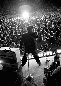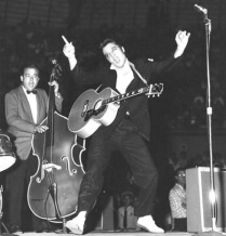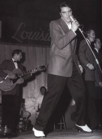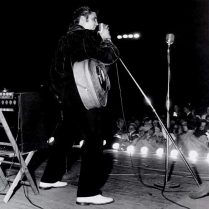 Abschiedskonzert vom „Louisiana Hayride“ in Shreveport am 15. Dezember 1956 – Elvis’ letzter Auftritt in einem Mega-Jahr Seinen letzten Live-Auftritt im ‚Mega-Jahr’ 1956 absolvierte Elvis Presley am 15. Dezember 1956, als er in Shreveport/Louisiana ein Abschieds- und Danke-Konzert bei der „Louisiana Hayride Show“ gab, die im Vorjahr 1955 zum Sprungbrett für alles geworden war, was sich dann 1956 ereignete. Das sehr emotionale Konzert, das die rasante Entwicklung Elvis Presleys vom regionalen Hoffnungsträger zum internationalen Mega-Star besonders deutlich machte, steht im Mittelpunkt des heutigen 29. Teils unserer Sonderserie „Elvis ’56 Revue“ über das erste ganz große Jahr des King of Rock’n’Roll. Die regelmäßigen Auftritte in den jeweils samstagabends live vor Publikum im „Municipal Auditorium“ in Shreveport/Louisiana stattfindenden Radiosendungen „The Louisiana Hayride Show“ waren von Herbst 1954 bis Ende 1955 ein ideales Sprungbrett und eine willkommene Übungsplattform für den noch ganz am Anfang stehenden Elvis Presley gewesen. Die Auftritte vergrößerten ständig den Bekanntheitsgrad des jungen Sängers und ließen diesen zugleich seinen Bühnenstil immer mehr verfeinern. Als Elvis jedoch im Frühjahr 1956 durch den neuen Plattenvertrag beim Branchenriesen „RCA“ und durch seine ersten Fernsehauftritte in der „Dorsey Show“ eine explosionsartige Entwicklung zum überregionalen großen Star nahm, wurde das einstige Sprungbrett schon wegen der terminlichen Blockierung des Samstagabend zu einem inzwischen zu klein gewordenen Hemmschuh. Elvis’ Manager Tom Parker blieb keine andere Wahl, als seinen Schützling aus diesem Missstand herauszulösen, und so hatte der ‚Colonel’ im März 1956 die Summe von 10 000,- Dollar investiert, um Elvis aus dem „Hayride“-Vertrag heraus zu kaufen. Seinen letzten regulären Auftritt in der Sendung absolvierte Elvis am 31. März 1956. Bei aller geschäftlichen Härte vergaß der Presley-Manager allerdings nie, mit wem er einmal faire Vereinbarungen hatte treffen können, und Elvis’ Dankbarkeit für Chancen, die man ihm mal eingeräumt hatte, stand ohnehin außerhalb jeder Diskussion. Und so kehrte der immer noch 21-Jährige Mitte Dezember 1956 ein letztes Mal an die Stätte seiner ersten größeren Erfolge zurück: Vereinbart war ein einmaliges letztes Konzert beim „Hayride“, das nicht nur als eine Abschieds- und Danke-Vorstellung bei der Radio-Show gelten sollte, sondern auch als Wohltätigkeitsveranstaltung zugunsten der im Aufbau begriffenen Shreveport-Niederlassung der Organisation „Young Men’s Christian Association (YMCA)“ ausgewiesen war. Wie sehr Elvis innerhalb der letzten Monate vom regionalen Hoffnungsträger erst zum überregionalen Star und dann sogar zum internationalen Super-Idol geworden war, merkten die Verantwortlichen beim „Hayride“ bzw. beim zuständigen Radio-Sender „Kennonwood William Kennon Henderson (KWKH)“ schnell. Um dem erwarteten Massenansturm der Teenies auch nur halbwegs gerecht werden zu können, musste man vom traditionellen aber mit ‚nur’ 3200 Plätzen viel zu kleinen „Municipal Auditorium“ ins neue und drei Mal so große „Hirsch Coliseum“ auf dem „Louisiana State Fairground“-Gelände ausweichen (oberes Foto mit Werbung für das Elvis-Konzert am rechten Bildrand), das damals in den Medien meist noch als „Hirsch Youth Center“ oder „Hirsch Youth Building“ bezeichnet wurde. Zur Gewährleistung eines wenigstens einigermaßen organisierten Ablaufs wurde das größte Polizei-Aufgebot in der Geschichte der Stadt bestellt. Elvis wiederum reiste bereits einen Tag vor dem Konzert nach Shreveport und brachte eine umfangreiche Entourage mit, in der sich neben seiner Stamm-Band „The Blue Moon Boys“ mit Leadgitarrist Scotty Moore, Bassist Bill Black und Schlagzeuger D. J. Fontana sowie dem Begleitchor „The Jordanaires“ auch ein gewisser Hal Kanter befand. Kanter war als Regisseur für den schon in Vorbereitung befindlichen zweiten Elvis-Spielfilm „Loving You“ ausgewählt worden, in dem der King quasi sich selbst – nämlich einen aufstrebenden jungen Rock’n’Roll-Star – spielen sollte. Das Shreveport-Konzert wollte der Regisseur sozusagen als Studienobjekt nutzen und aufmerksam beobachten, um später im Film die Live-Szenen so authentisch wie möglich zu inszenieren. Rahmenbedingungen des Königs des Rock’n’Roll im Dezember 1956… Nachdem sich schon beim Wettlauf auf die über 9000 Tickets hysterische Szenen in den Vorverkaufsstellen abgespielt hatten, erwartete am Samstagabend, dem 15. Dezember 1956, um 20.00 Uhr eine brodelnden, vibrierende, juchzende Masse von Teenagern sehnsüchtig ihren Helden im ausverkauften „Hirsch Coliseum“. Und als nach dem Abspulen des Vorprogramms Moderator Horace Logan endlich Elvis auf die Bühne holte, schien die Halle fast zu explodieren! Während der nächsten 35 Minuten rockte und rollte der Champion durch eine Setlist von 10 Songs und zelebrierte mal hüftwackelnd, mal beinzuckend, mal grinsend-schmachtend seine zu dieser Zeit besten und bekanntesten Songs von „Heartbreak Hotel“ über „Love Me Tender“ und „Don’t Be Cruel“ bis „Hound Dog“ (zweites und drittes Foto). Während der rockig-spektakulären bis unterschwellig-erotischen Darbietung kreischte und schrie das ausrastende Publikum fast unaufhörlich wie besessen, so dass es trotz des längst deutlich aufgerüsteten Sound-Systems Mühe bereitete, Gesang und Musik überhaupt wahrzunehmen. Der Sender „KWKH“ übertrug wie von den regulären Show-Sendungen gewohnt das „Louisiana Hayride“-Sonderspektakel mit Elvis live im Radio, und am Ende fiel von Moderator Logan erstmals ein Verabschiedungssatz, der rund 15 Jahre später als eine von unzähligen Presley-Schlagzeilen in die Musikgeschichte eingehen sollte: „Elvis has left the building!“ Und tatsächlich hatte der Star des Abends sich bereits stol
