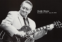 Der wie berichtet am 28. Juni 2016 im Alter von 84 Jahren verstorbene erste Elvis-Gitarrist Scotty Moore ist am Samstag, dem 2. Juli 2016, neben den Gräbern seiner Eltern auf dem Friedhof in dem Ort Humboldt/Tennessee unweit der Farm, auf der er am 27. Dezember 1931 geboren worden war, beigesetzt worden. Zu der vom Bestattungsinstitut „Shelton Funeral Homes“ gestalteten Beerdigung waren nur die engsten Familienmitglieder sowie ganz enge Weggefährten und Freunde zugelassen, unter ihnen auch Scotty Moores 85-jähriger Band-Kollege aus den guten alten Elvis-Zeiten D. J. Fontana. Eine Trauerfeier und Lebenswürdigung im größeren Rahmen für die gesamte Öffentlichkeit soll für den legendären Gitarristen in den nächsten Wochen in Nashville/Tennessee folgen. Datum: 4./5. Juli 2016 – Quellen: Familie Moore, Shelton Funeral Homes |