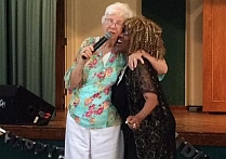 Einen runden und ganz besonderen Geburtstag wird Ende dieses Monats die wohl älteste noch lebende Elvis-Weggefährtin feiern: Elvis Presleys persönliche Krankenschwester und enge Vertraute der Jahre 1975 bis 1977 Marian Justice Cocke wird am 28. Juli 2016 stolze 90 Jahre alt werden! Würde die scheinbar unverwüstliche alte Dame ihren Ehrentag rüstig und fröhlich daheim in Memphis feiern, wäre dies schon erfreulich genug. Tatsächlich aber ist es – wenn auch etwas verfrüht – anders und noch viel schöner gekommen: Freunde von Frau Cocke und Aktivisten der US-amerikanischen Elvis-Szene haben bereits jetzt eine große Überraschungs-Geburtstagsfeier für die Jubilarin organisiert, die am gestrigen Samstag, dem 9. Juli 2016, in Orlando/Florida stattgefunden hat und Marian Cocke mit einigen Ständchen, Ansprachen und Geschenken auf ganz wundervolle Weise hochleben ließ. Die alte Dame zeigte sich zutiefst gerührt und glücklich und genoss die unerwartete vorgezogene Geburtstagsparty sichtlich, zu der u. a. auch Estelle Brown vom originalen Elvis-Begleitchor „The Sweet Inspirations“ (oberes Foto) und der bekannte Elvis-Magazin-Herausgeber und Elvis-Radio-Sendungs-Produzent Darwin Lamm (unteres Foto) erschienen waren. Hoffen wir, dass Marian Justice Cocke so agil und munter bleiben wird, wie sie sich gestern in Orlando gezeigt hat, damit sie ihren 90. Geburtstag in zweieinhalb Wochen zuhause in Memphis dann ‚termingerecht’ zelebrieren kann! Datum: 10. Juli 2016 – Quellen: Marian Justice Cocke, Kathleen DeNike, Kay Lipps |