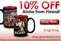 Ganz dem bis heute weltberühmten Fernseh-Live-Konzert „Elvis Aloha From Hawaii Via Satellite“ vom 14. Januar 1973 ist das nächste Sonderangebot des Shop von Elvis Presley Enterprises (EPE) in Memphis gewidmet. Offeriert werden CDs und DVDs mit der rekordträchtigen Show des King sowie Fanartikel wie T-Shirts, Kaffeetassen, Trinkbecher, Magneten, gerahmte Bilder und Taschen mit „Aloha From Hawaii“-Motiven zu einem Rabatt von 10 Prozent. Das neue Sonderangebot gilt bis zum kommenden Samstag, den 16. Juli 2016, und findet sich im Internet hier. Datum: 12. Juli 2016 – Quelle: Elvis Presley Enterprises (EPE) |