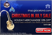 Mitten im gegenwärtigen Hochsommer steht einem eigentlich überhaupt nicht der Sinn nach Winterromantik, Schneegestöber und Weihnachten. Andererseits kann man in dieser Jahreszeit oft feine Schnäppchen beim Kauf von Weihnachtsartikeln machen. Genau dies gilt für das aktuelle neue Sonderangebot des Shop von Elvis Presley Enterprises (EPE), bei dem unter dem Motto „Christmas In July Sale“ ein Rabatt von 10 Prozent auf Elvis-Christmas-Artikel wie Weihnachts-CDs, Tannenbaum-Schmuck, jahreszeitliche Dekorationsgegenstände und Weihnachtsgrußkarten gewährt wird. Das Angebot gilt bis zum übernächsten Samstag, den 30. Juli 2016, und findet sich im Internet hier. Datum: 19. Juli 2016 – Quelle: Elvis Presley Enterprises (EPE) |