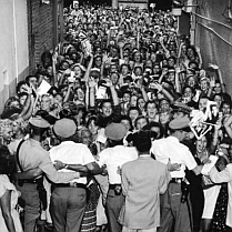 Massenandrang und Teenie-Hysterie bei der Sommer-Tournee durch Florida im August 1956 Täglicher Massenandrang und bis dahin beispiellose Teenie-Hysterie prägten Elvis Presleys Sommer-Tournee durch die US-Bundesstaaten Florida und Louisiana im August 1956. Im 19. Teil unserer diesjährigen Sonderserie „Elvis ’56 Revue“ schauen wir auf den Auftakt der Tournee in Miami vor genau 60 Jahren am 3. und 4. August 1956 und blicken auf den weiteren Verlauf der Auftrittsreise, die nach zehn unvorstellbar turbulenten Tagen am 12. August 1956 in New Orleans endete. Die meiste Zeit des Monats Juli 1956 hatte Elvis dazu genutzt, endlich mal etwas auszuspannen und mit seiner 18-jährigen neuen Freundin June Juanico Urlaub zu machen, den das junge Paar zeitweise in Junes Heimatstadt Biloxi/Mississippi verbrachte. Die Ferien hatte sich Elvis nach dem Rock’n’Roll-Marathon des ersten Halbjahres 1956 redlich verdient. Zugleich benötigte der spätestens seit dem Song „Hound Dog“ zum König des Rock’n’Roll aufgestiegene 21-jährige Sänger die frisch getankte Kraft aber auch für die nächsten großen Aufgaben, die ihn ab August 1956 in Atem halten sollten. Los ging es zunächst mit einer neuen Konzert-Tournee, die Manager Tom Parker durch Florida und Louisiana gebucht hatte. Dabei war die Tour zwar kürzer als die vorherigen, doch hatte das Tagespensum mit teilweise drei oder sogar vier Vorstellungen pro Tag ein fast schon übermenschliches Ausmaß angenommen. Ein halbes Jahr, nachdem Elvis mit seinen ersten Platten bei der großen Firma „RCA“ und mit seinen ersten Fernsehauftritten erstmals landesweite Bekanntheit erlangt hatte, war Amerikas Jugend bereits völlig verrückt nach ihrem neuen Idol! Schon beim Tournee-Auftakt im „Olympia Theater“ in Miami/Florida am 3. und 4. August 1956 waren insgesamt sieben Shows in zwei Tagen (!) erforderlich, um das gewaltige Interesse der Fans zu bedienen. Von Miami aus zog der Elvis-Orkan eine Spur der Ekstase durch die Region: 5. August Tampa/Florida (2 Shows), 6. August Lakeland/Florida (3 Shows), 7. August St. Petersburg/Florida (3 Shows), 8. August Orlando/Florida (2 Shows), 9. August Daytona Beach/Florida (2 Shows), 10. und 11. August jeweils Jacksonville/Florida (jeweils 3 Shows) und 12. August New Orleans/Louisiana (2 Shows). In jeder Stadt war jede Vorstellung bis auf den letzten Platz ausverkauft und spielten sich im Publikum unbeschreibliche Szenen grenzenloser Begeisterung ab. Vor allem die Massen von fast ununterbrochen kreischenden jungen Mädchen erreichten eine Lautstärke, die phasenweise Elvis’ Gesang und die Begleitmusik seiner Band „The Blue Moon Boys“ kaum noch hörbar machte! Nichtsdestoweniger lebte der King während der Auftritte sein Musik-Gefühl voll aus; Elvis zelebrierte den Rock’n’Roll mit „Hound Dog“ und „Blue Suede Shoes“, flirtete mit Balladen wie „I Want You, I Need You, I Love You“, durchlitt den Blues bei „Heartbreak Hotel“! Seine Darbietungen schienen lebendiger zu sein als das Leben selbst! Und sie waren auch von den Gegnern nicht mehr zu stoppen, so sehr das spießbürgerliche Establishment dies auch versuchte, besonders in Jacksonville: Als Baptisten-Pfarrer Robert Gray in seiner Kirche öffentlich wetterte, dass Elvis die Verkörperung tiefster Verkommenheit sei, …antwortete dieser über die Presse, er gehe in die Kirche, seit er laufen könne. Als Polizeibeamte einen der Elvis-Auftritte wegen der ‚unanständigen’ Bühnenbewegungen des King filmten, …bewegte dieser statt seiner Hüften demonstrativ nur den kleinen Finger. Und als Richter David Gooding zum Zweck der Vermeidung ‚jugendlicher Exzesse’ ein Verbot der Konzerte in Erwägung zog, …lud Elvis den Richter zu einem Gespräch in seine Garderobe ein und beeindruckte ihn mit seiner respektvollen und zugleich offenherzigen Art derart, dass Gooding alles für gut befand, solange Elvis beim Singen auf der Bühne bitte seine Hüften nur zur Seite statt von hinten nach vorne bewegte! Was auch immer Elvis Presley in diesen Tagen sang, sagte oder tat: Im August 1956 in Florida gelang ihm in bereits königlicher Weise einfach ALLES! (Fortsetzung folgt). Datum: 3./4. August 2016 – Quellen: Diverse |