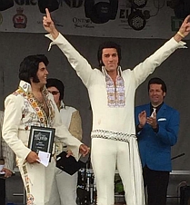 Einen weiteren großen Erfolg auf dem nordamerikanischen Kontinent hat der deutsche Elvis-Darsteller Oliver Steinhoff am vergangenen Wochenende errungen. Der Dortmunder gewann den letzten Vorrundenwettbewerb zum „Ultimate Elvis Tribute Artist Contest 2016“ von Elvis Presley Enterprises (EPE), der wie angekündigt zu den zentralen Programmpunkten des großen sechstägigen „Collingwood Elvis Festival“ in der Stadt Collingwood in Kanada gehört hatte. Steinhoff setzte sich bei dem hart umkämpften Wettstreit gegen über 100 Mitbewerber durch und wird nun zum zweiten Mal in seiner Karriere zur großen Endrunde des „Ultimate Elvis Tribute Artist Contest“ in Elvis’ Heimatstadt Memphis/Tennessee reisen. Dort wird der mit Spannung erwartete Showdown des weltgrößten Elvis-Imitatoren-Wettbewerbs am 13. August 2016 im „Orpheum Theatre“ über die Bühne gehen. Im kanadischen Collingwood beglückwünschte indessen nach der Siegerehrung Bürgermeisterin Sandra Cooper den Deutschen zu seinem Erfolg und der damit verbundenen Memphis-Qualifikation (s. Foto). Neben zahlreichen weiteren Elvis-Imitatoren-Shows außerhalb des Wettbewerbs bot das „Collingwood Elvis Festival“ unter freiem Himmel bei hochsommerlichem Wetter am malerischen Lake Huron auch die Auftritte mehrerer früherer Elvis-Weggefährten wie Tournee-Veranstalter Charles Stone, Familien-Krankenschwester Letetia Henley Kirk und Freund Jimmy Velvet, die in Live-Interview-Runden vor Publikum sowie in Autogramm- und Fotostunden zu erleben waren. Viel Beachtung fanden zudem auch eine Automobil-Oldtimer-Parade und ein Elvis-Fanartikel-Markt. Datum: 25. Juli 2016 – Quelle: Collingwood Elvis Festival |