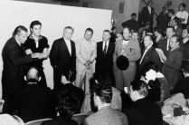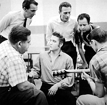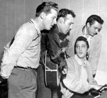 Die „Million Dollar“-Quartett-Session im „Sun-Studio“ in Memphis am 4. Dezember 1956 Ein spontaner Besuch von Elvis Presley bei seiner alten Wirkungsstätte, dem „Sun-Studio“ von Sam Phillips in seiner Heimatstadt Memphis/Tennessee, mündete am 4. Dezember 1956 in eine der lange Zeit sagenumwobensten Zufalls-Sessions der Musikgeschichte. Im heutigen 28. Teil unserer diesjährigen Sonderserie „Elvis ’56 Revue“ blicken wir darauf zurück, wie vor genau 60 Jahren Elvis Presley, Carl Perkins, Jerry Lee Lewis und Johnny Cash völlig ungeplant ein Quartett für einen Tag bildeten, das Millionen von Dollar schwer war. Nach der von seinen Fans enthusiastisch gefeierten Premiere seines ersten Spielfilms „Love Me Tender“ am 15. November 1956 war Elvis Ende des Monats noch einmal auf eine kurze aber von den Dimensionen her erneut gewaltige Konzert-Tournee gegangen, die ihn zu ausverkauften und von den Teenie-Massen hysterisch umjubelten Shows nach Toledo/Ohio, Cleveland/Ohio, Troy/Ohio und Louisville/Kentucky geführt hatte. Danach kehrte der König des Rock’n’Roll für einige Tage nach Hause zurück und ließ es sich in Memphis bei diversen privaten Unternehmungen verdientermaßen gut gehen. Am Nachmittag des 4. Dezember 1956, einem Dienstag, beschloss Elvis spontan, seine alte Wirkungsstätte und seinen allerersten Produzenten und Förderer zu besuchen, das „Sun-Studio“ von Sam Phillips in der Union Avenue (oberes Foto), wo seine Karriere eineinhalb Jahre zuvor ihren Anfang genommen hatte. Das ‚Hallo’ war groß, als Elvis zusammen mit dem Las Vegas-Show-Girl Marilyn Evans als Begleiterin unangekündigt das Gebäude betrat, obwohl er eigentlich sogar ‚störte’: Im Studio nämlich hielt gerade sein Rock’n’Roll-Kollege Carl Perkins mit einigen Begleitmusikern eine Session ab, bei der der noch ganz am Anfang stehende Jerry Lee Lewis, ein hoffnungsvoller weiterer Rock’n’Roller, als Pianist fungierte. An eine Fortsetzung der Aufnahmen war rasch nicht mehr zu denken, spätestens nachdem Elvis sich angehimmelt von Marilyn Evans ans Klavier gesetzt hatte (zweites Foto). Stattdessen begann eine völlig spontane und während jeder Sekunde faszinierende Jam-Session, zu der einige Zeit später auch noch der von Sam Phillips telefonisch herbeigerufene junge Country-Sänger Johnny Cash stieß. Ein ehemaliger und inzwischen zu riesigem Ruhm gekommener „Sun“-Künstler (Elvis) und drei aktuell bei dem Label unter Vertrag stehende Künstler (Perkins, Lewis und Cash) gemeinsam musizierend in einem Raum (drittes Foto): Geistesgegenwärtig – und ohne ein ‚Sterbenswörtchen’ darüber zu verlieren – schaltete Sam Phillips das Aufnahmegerät ein, um das außergewöhnliche Geschehen für die Nachwelt auf Tonband festzuhalten. Der Instinkt eines Musik-Pioniers! Die Titel, die die Star-Truppe spielte, bestanden zum Teil aus Rock’n’Roll-Songs, Country-Liedern und Blues-Stücken wie „Don’t Be Cruel“, „Brown Eyed Handsome Man“ und „Reconsider Baby“, zu einem fast ebenso großen Teil aber auch aus Gospel-Standards wie „Just A Little Talk With Jesus“, „Peace In The Valley“ und „Farther Along“. Dabei wurden manche Songs nur kurz angespielt, während andere mehr oder weniger sauber durchgesungen wurden. In jedem Fall begeisterte die rund eineinhalbstündige Jam-Session alle Anwesenden, unter denen sich alsbald auch der ebenfalls von Sam Phillips verständigte Zeitungsreporter Robert Johnson befand (auf unterem Foto links neben Phillips und Elvis). Johnson war es dann auch, der in seinem am folgenden Tag in der Tageszeitung „Memphis Press-Scimitar“ veröffentlichten Artikel über die Session erstmals die Bezeichnung „Million Dollar Quartet“ für den Presley-/Perkins-/Lewis-/Cash-Musikspaß verwendete und damit einen Begriff schuf, der zusammen mit Sam Phillips heimlichem Mitschnitt in die Musikgeschichte einging. Die Aufnahmen indes musste der „Sun Records“-Besitzer aus rechtlichen Gründen viele, viele Jahre lang unter Verschluss halten. Doch was lange währt, wurde auch hier am Ende gut: Im Jahr 1981 veröffentlichte „Sun Records“ unter dem neuen Besitzer Shelby Singleton zum ersten Mal einen Teil des Mitschnitts auf der LP „The Million Dollar Quartet“. Die bislang kompletteste Veröffentlichung der Session erfolgte im Jahr 2006 zum 50-jährigen Jubiläum der Aufnahmen auf der CD „The Complete Million Dollar Quartet“ von Elvis’ Plattenfirma „Sony“/„BMG“. Heute, genau sechs Jahrzehnte nach ihrem Stattfinden, ist die Zufalls-Session des „Million Dollar Quartet“ vom 4. Dezember 1956 ein wunderbares Zeugnis für etwas, das man im Musikbetrieb des Jahres 2016 kaum noch findet: Natürliche Freude von wirklich großen Künstlern am spontanen Musizieren! (Fortsetzung folgt). Datum: 4. Dezember 2016 – Quellen: Diverse |