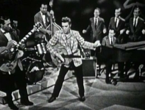 Triumph in seltsamem Gewand beim Fernsehauftritt in der „Steve Allen Show“ am 1. Juli 1956 Der 15. Teil unserer laufenden diesjährigen Sonderserie „Elvis ’56 Revue“ zum 60-jährigen Jubiläum des ersten ganz großen Elvis-Jahres 1956 widmet sich heute Elvis Presleys erstem und einzigem Auftritt in der „Steve Allen Show“ im amerikanischen Fernsehen am 1. Juli 1956, bei dem der gerade frisch gebackene König des Rock’n’Roll sich fast bis zur Unkenntlichkeit verbiegen ließ, aber trotz des seltsamen Gewandes den nächsten Triumph seiner noch jungen Karriere feierte. Elvis Presley – King of Rock’n’Roll, war das schlichte aber zugleich überwältigende Resultat von Elvis’ Auftritt in der Fernseh-Show von Milton Berle am 5. Juni 1956 und speziell seiner ‚unerhörten’ Darbietung von „Hound Dog“ in der Sendung gewesen. In den folgenden Wochen beherrschten der junge Sänger und die in der amerikanischen Öffentlichkeit ausufernden Kontroversen um ihn die Schlagzeilen und das gesellschaftliche Leben in den USA. Der Jugend galt Elvis als Idol schlechthin und als herzlichst willkommener Befreier vom spießigen Muff und der langweiligen Sauberkeit der 50er Jahre; für große Teile des Establishments hingegen verkörperte er eine Furcht einflössende Bedrohung eben dieser feinen Ordentlichkeit und einen Unhold, der die Anständigkeit der jungen Menschen verderben werde. In genau dieser Phase sahen der US-Fernsehsender „NBC“ und sein Spitzen-Moderator Steve Allen eine Riesen-Chance: Wenn man Elvis Presley für einen Auftritt in der „Steve Allen Show“, einer Konkurrenz-Sendung zur marktführenden „Ed Sullivan Show“ beim Sender „CBS“, verpflichten würde, ohne dass der Sänger wieder eine ‚obszöne Sex-Show’ hinlegen würde, hätte man ein Übertreffen des übermächtig erscheinenden Konkurrenten zum Greifen nah. Die entsprechenden Vereinbarungen waren schnell getroffen, und am Sonntag, dem 1. Juli 1956, präsentierte die „Steve Allen Show“ tatsächlich Elvis Presley als Headliner. Aber war das wirklich Elvis Presley? Um nur ja nicht wieder einen Sturm der Entrüstung von Politikern, Kirchenführern und Lehrern zu ernten wie Milton Berle knapp einen Monat zuvor, steckte man Elvis in einen Frack und ließ ihn „Hound Dog“ einem gelangweilt dreinschauenden Bassett-Hund vorsingen, dem man als Krönung einen Zylinder aufgesetzt hatte (oberes Foto). Hinzu kamen ein Vortrag der ohnehin eher unproblematischen Ballade „I Want You, I Need You, I Love You“ (mittleres Foto), die in der US-Single-Chart immer noch hoch platziert war, sowie ein amüsanter Country-Sketch, bei dem die gesamte Besetzung der Show einschließlich Steve Allen und Elvis das Liedchen „Yippee Yi Yo, Yippee Yi Yay“ vortrug (unteres Foto). Es war ein weichgespültes Familienprogramm, das mit kernigem bis erotischem Presley-Rock’n’Roll des Jahres 1956 nichts, aber auch gar nichts zu tun hatte, auch wenn Elvis’ raue Stimme bei „Hound Dog“ unterschwellig andeutete, zu was der 21-Jährige eigentlich auch an diesem Abend bei der Live-Sendung im „Hudson Theater“ von New York City fähig gewesen wäre. Das Resultat des Unternehmens allerdings schien all dies eindrucksvoll zu rechtfertigen: Mit einer Zuschauerzahl von 20,2 Millionen Menschen und einer Einschaltquote von 55,3 Prozent hatte die „Steve Allen Show“ die „Ed Sullivan Show“ zum ersten Mal weit übertroffen, die trotz einer großen Star-Besetzung u. a. mit Gregory Peck, Orson Welles und Lauren Bacall nur auf 14,8 Millionen Zuseher und eine Quote von 39,7 Prozent gekommen war. Ein Triumph für Steve Allen dank Elvis! Dazu hielten sich die Proteste des Spießbürgertums diesmal in Grenzen, während die Teenager endlos glücklich waren, ihr neues Idol zum zweiten Mal innerhalb von nur dreieinhalb Wochen in einer Top-Sendung des Fernsehens live erlebt zu haben. Nur Elvis selbst drückte trotz des neuen riesigen Erfolges der Magen: War es der Preis des Ruhmes, sich derart verbiegen zu lassen wie in der „Steve Allen Show“? Schon mit 21 Jahren spürte der junge Sänger, wie schwer es bereits damals war, in der dünnen Luft an der Spitze des Show-Business er selbst zu bleiben… (Fortsetzung folgt). Datum: 1./2. Juli 2016 – Quellen: Diverse |