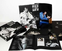 Nach den beiden neuen Live-Doppel-CDs der inoffiziellen Firma „Straight Arrow“ (s. unseren betreffenden Bericht von gestern) ist auf dem Elvis-Sammlermarkt nun auch die angekündigte 4-CD-Box „Elvis 1969 In Person“ des ebenfalls inoffiziellen Herstellers „Rock’n’Roll Majesty“ erschienen. Wie man schon von früheren Produkten dieses Labels gewohnt ist, enthält das Set ausschließlich bereits bekannte Aufnahmen des King, und zwar in diesem Fall schon längst veröffentlichtes Live- und Studio-Material aus Elvis’ großem Comeback-Jahr 1969. Im Einzelnen präsentieren die ersten drei der vier Discs von „Elvis 1969 In Person“ professionelle Live-Mitschnitte von Konzerten von Elvis’ triumphalem Comeback-Gastspiel im „International Hotel“ in Las Vegas vom Sommer 1969, und zwar Disc 1 die Midnight-Show vom 24. August 1969 (gab es bereits auf der CD „Here I Go Again“ der inoffiziellen Firma „Diamond Anniversary Editions“), Disc 2 die Midnight-Show vom 25. August 1969 (bereits bekannt von der CD „Hot August Night“ des offiziellen Sammlerlabels „Follow That Dream Records“) und Disc 3 die Midnight-Show vom 26. August 1969 (schon veröffentlicht auf der CD „All Shook Up“ ebenfalls vom „Follow That Dream“-Label). Disc 4 schließlich umfasst 23 Songs von den Elvis-Sessions im „American Sound Studio“ in Memphis vom Januar und Februar 1969, die überwiegend in den puren unbearbeiteten Master-Take-Versionen ohne die späteren so genannten Overdubs z. B. durch Bläser und Streicher zu hören sind. Auch diese puren Fassungen der 1969er Studio-Songs sind durch frühere offizielle wie inoffizielle Veröffentlichungen bereits bekannt. Das 4-CD-Set „Elvis 1969 In Person“ von „Rock’n’Roll Majesty“ ist im Longbox-Format aufgemacht und verfügt über ein 12-seitiges Booklet. Das Produkt ist in einer auf 400 einzeln nummerierte Exemplare limitierten Auflage auf dem Elvis-Sammlermarkt herausgebracht worden. Datum: 25. Juli 2016 – Quelle: Elvis On CD |