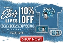 In Memphis hat Elvis Presley Enterprises (EPE) erstmals das neue Fanartikel-Sortiment vorgestellt, das zur in einem Monat in Elvis’ Heimatstadt beginnenden „Elvis Week 2016“ zum 39. Todestag des King geschaffen worden ist. Die umfangreiche Produktpalette reicht von T-Shirts (s. Abbildung) über Caps, Buttons, Schlüsselanhänger, Magneten, Kaffeetassen, Trinkbecher, Wasserflaschen, Fächer und Postkarten bis zu Einkaufsbeuteln, wobei alle Artikel natürlich das offizielle Emblem der „Elvis Week 2016“ tragen. Käuflich zu erwerben sind die neuen „Elvis Week“-Fanartikel zum gegenwärtigen Zeitpunkt noch nicht, da die Produkte erst ab dem 9. August 2016 und damit einen Tag vor Beginn der weltgrößten Elvis-Gedenkveranstaltung erhältlich sein werden. Allerdings bietet EPE in seinem Internet-Shop schon jetzt eine Vorbestellmöglichkeit für alle Artikel an, siehe hier. Datum: 11. Juli 2016 – Quelle: Elvis Presley Enterprises (EPE) |