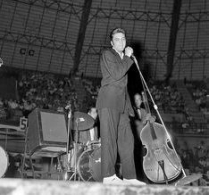 Hysterisch umjubeltes Heimkehr-Konzert von Elvis in Memphis am 4. Juli 1956 Im heutigen 17. Teil unserer laufenden Sonderserie „Elvis ’56 Revue“ zum diesjährigen 60-jährigen Jubiläum des ersten ganz großen Elvis-Jahres 1956 blicken wir auf Elvis’ erstes ganz hysterisch umjubeltes Heimkehr-Konzert in seiner Heimatstadt Memphis vor 60 Jahren, am 4. Juli 1956, zurück. Nach den aufregenden und ihm alles abverlangenden Tagen in New York City mit dem von über 20 Millionen Menschen gesehenen Fernsehauftritt im aufgezwungenen Frack in der „Steve Allen Show“ am Sonntag, dem 1. Juli 1956, und der stundenlangen „Hound Dog“-/„Don’t Be Cruel“-Aufnahmesession im „RCA“-Studio am Montag, dem 2. Juli 1956, war Elvis Presley am Dienstag, dem 3. Juli 1956, mit einer 27-stündigen (!) Zugfahrt in seine Heimatstadt Memphis/Tennessee zurückgekehrt, wo ihn im Familien-Haus am Audubon Drive seine Eltern, weitere Verwandte und einige Freunde freudig willkommen hießen. Doch bevor sich der 21-jährige neue und größte Stern am Show-Business-Himmel endlich wieder ein paar Tage Pause daheim gönnen konnte, stand noch ein weiterer Job an: Am Mittwochabend, dem 4. Juli 1956 – es war der 180. Jahrestag der amerikanischen Unabhängigkeitserklärung – war Elvis als Headliner eines mehrstündigen großen Wohltätigkeitskonzertes im „Russwood Park“ von Memphis gebucht worden, einem kleineren Baseball-Stadion der Stadt, das gelegentlich auch für kulturelle Veranstaltungen benutzt wurde. Neben Elvis, der seine reguläre Band „The Blue Moon Boys“ und auch wieder den Begleitchor „The Jordanaires“ mitbrachte, traten noch 100 andere Künstler in der Show auf, bei der die Bigband von Aaron Bluestein als permanentes Backup-Orchester agierte. Als um 17.00 Uhr die Arena ihre Pforten öffnete, strömten 14 000 Menschen hinein, von denen wohl 80 Prozent Elvis-Fans im Teenie-Alter waren, die sich beim Sprint um die besten Plätze vorne an der Bühne fast gegenseitig über den Haufen rannten. Es war die größte Kulisse, die der „Russwood Park“ bis dahin gesehen hatte, und Elvis enttäuschte seine Fans nicht. „Diese Leute in New York werden mich nicht ändern. Heute Abend werde ich Euch zeigen, wie der wahre Elvis ist!“, verkündete ein diesmal tatsächlich rebellisch aufgelegter Elvis gleich zu Beginn seines Auftritts in wütender Anspielung auf die lächerliche Frack-Verkleidung im Angesicht eines gelangweilten und mit einem Zylinder ebenfalls verschandelten Bassett-Hundes, die man ihm drei Tage zuvor bei der Live-Ausstrahlung der „Steve Allen Show“ in New York aufgezwungen hatte. Jetzt im heimischen „Russwood Park“ sang Elvis u. a. „Heartbreak Hotel“, „Blue Suede Shoes“, „I Want You, I Need You, I Love You“ und natürlich „Hound Dog“… und rockte unter hysterischem Jubel der Teenies diesmal wieder so, wie die Fans es von ihm sehen und hören wollten. Eine Klasse-Performance des neuen King of Rock’n’Roll, wie er 1956 wirklich war! (Fortsetzung folgt). Datum: 4./5. Juli 2016 – Quellen: Diverse |