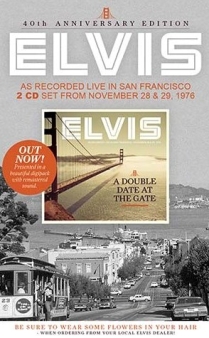 Im Rahmen seiner mehrmonatigen „American Bicentennial Tour ’76“ anlässlich der amerikanischen 200-Jahr-Feiern des Jahres 1976 hatte Elvis am 28. und 29. November 1976 zwei starke Konzerte im mit jeweils 14 300 Fans beide Male restlos ausverkauften „Cow Palace“ in San Francisco/California gegeben. Seit Mitte der 90er Jahre waren beide Shows mehrfach auf CD-Alben offizieller wie inoffizieller Hersteller veröffentlicht worden, und zwar das Konzert vom 28. November 1976 als leider unvollständiger Soundboard-Mitschnitt auf den inoffiziellen CDs „America The Beautiful“ von „King Records“ im Jahr 1997 und „San Francisco Bay Blues“ von „Audionics“ im Jahr 2011 sowie das Konzert vom 29. November 1976 als leider auch nicht ganz komplette Soundboard-Aufnahme auf Disc 1 der offiziellen Doppel-CD „The West Coast Tour ’76“ von „Follow That Dream Records (FTD)“ erst in diesem Jahr 2016. Dazu hatte es die Show vom 29. November 1976 als annähernd vollständigen und klanglich guten Publikumsmitschnitt schon im Jahr 1996 auf der wiederum inoffiziellen CD „The Nation’s Only Atomic Powered Singer“ der Firma „Hope Record Company“ gegeben. Zum 40-jährigen Jubiläum der Shows hat nun ein ‚namenloser’ inoffizieller Hersteller unangekündigt die besagten Soundboard-Mitschnitte der beiden 1976er San Francisco-Konzerte des King auf einer neuen Doppel-CD wiederveröffentlicht (s. Flyer-Abbildung). Das im Digipack dargereichte Album trägt in Anspielung auf die berühmte „Golden Gate Bridge“ der kalifornischen Großstadt den Titel „A Double Date At The Gate“. Inhaltlich ist das Wunder, die beiden Soundboard-Aufnahmen nun mit den jeweils kompletten Shows hören zu können, leider ausgeblieben. So fehlen wie schon bei allen genannten früheren Veröffentlichungen dieser Mitschnitte beim Konzert vom 28. November 1976 die im Schlussteil von Elvis gebrachten Lieder „Hawaiian Wedding Song“, „Blue Christmas“, That’s All Right“ und „Can’t Help Falling In Love“ sowie beim Konzert vom 29. November 1976 die ebenfalls am Ende dargebotenen Songs „Blue Christmas“, „Mystery Train“/„Tiger Man“, „Hawaiian Wedding Song“ und „Can’t Help Falling In Love“. Datum: 1. Dezember 2016 – Quelle: For Elvis CD Collectors |