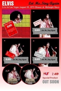 Noch nicht erschienen aber zur baldigen Veröffentlichung angekündigt worden ist eine weitere Live-Doppel-CD mit zwei Elvis-Konzerten aus den 70er Jahren. Das Album wird von der inoffiziellen Firma „MXF“ kommen und den Titel „Let Me… Sing Again“ tragen. Zu hören sein werden zwei Konzerte des King von einem Tag seines komplett ausverkauften 1973er Sommergastspiels im „Hilton Hotel“ in Las Vegas, nämlich die Dinner-Show und die Midnight-Show vom 25. August 1973. Die Dinner-Show ist bislang noch unveröffentlicht, während es die Midnight-Show bereits als kompletten und tonqualitativ bemerkenswert guten Publikumsmitschnitt im Jahr 2007 auf den fast zeitgleich erschienenen ebenfalls inoffiziellen CDs „Summer Festival ’73“ des Labels „Magic“ und „It’s A Matter Of Time“ eines ‚namenlosen’ Herstellers gegeben hatte. Auf der nun kommenden neuen Doppel-CD „Let Me… Sing Again“ von „MXF“ wird die unveröffentlichte Dinner-Show als neu entdeckte komplette Publikumsaufnahme in sehr guter Klangqualität auf Disc 1 präsentiert werden, während die wie beschrieben schon bekannte Midnight-Show auf Disc 2 mit dem bereits auf den früheren CDs „Summer Festival ’73“ und „It’s A Matter Of Time“ zu hörenden Publikumsmitschnitt dargereicht werden wird. Das Lied „It’s A Matter Of Time“ wiederum war und ist aus Sammlersicht die ‚Perle’ des Ganzen, da nach gegenwärtigem Kenntnisstand Elvis diese schöne 1972er Ballade nur ein einziges Mal live gesungen hatte, nämlich in eben jener Midnight-Show des 25. August 1973 in Las Vegas. Ähnlich wie bereits bei ihrer im Juni 2016 erschienen CD-/DVD-Kombination „Elvis Atlanta 1975“ wird die Firma „MXF“ auch die kommende Doppel-CD „Let Me… Sing Again“ mit vier verschiedenen Cover-Varianten herausbringen (s. Flyer-Abbildung), wobei jede Variante in einer Auflage von 100 Exemplaren hergestellt werden soll, was eine Gesamtauflage von 400 Stück ergibt. Allen Varianten gemeinsam sein wird der Cover-Typ – jeweils ein Digipack im 17-Zentimeter-Großformat – und die Beilage eines Miniposters mit einem zu den Aufnahmen passenden Elvis-Live-Foto. Datum: 1. Dezember 2016 – Quelle: For Elvis CD Collectors |