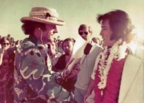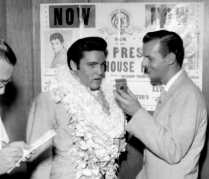 Ein weiteres Mal hat sich die Elvis-Welt von einem bedeutenden Weggefährten des King verabschieden müssen: Am Dienstag, dem 13. Dezember 2016, ist der bekannte Hawaii-Radio-Moderator, Konzert-Veranstalter und Elvis-Freund Tom Moffatt (oberes Foto) nach kurzer Krankheit im Alter von 85 Jahren in seinem Haus im Honolulu/Hawaii verstorben. Tom Moffatt, geboren am 30. Dezember 1930 in South Lyon/Michigan (nahe der Großstadt Detroit gelegen), war im Jahr 1950 nach Hawaii gekommen, um dort die Universität zu besuchen. Zunächst nur nebenbei, alsbald jedoch hauptberuflich, engagierte sich der redegewandte und charismatische junge Mann in der Rundfunk-Szene der pazifischen Inselgruppe und wurde rasch zum Star-Moderator- und -Discjockey des vielgehörten örtlichen Senders „K-POI“. Moffatt galt dabei als erster hawaiianischer DJ überhaupt, der Rock’n’Roll-Songs im Radio-Programm der Inseln spielte. Die große Stunde des Radio-Mannes schlug, als der von ihm glühend verehrte Elvis Presley am 10. und 11. November 1957 für insgesamt drei Konzerte erstmals auf Hawaii zu Gast war. Tom Moffatt interviewte den King in besonders gekonnter Manier (mittleres Foto) und diente sich dessen Manager Tom Parker erfolgreich als einflussreiche Hilfskraft an. Fortan waren Moffatt und der Sender „K-POI“ in alle Hawaii-Projekte von Elvis involviert, ob es das „USS Arizona Memorial“-Benefizkonzert am 25. März 1961, die Spielfilme „Blue Hawaii“ im Jahr 1961, „Girls! Girls! Girls!“ von 1962 und „Paradise, Hawaiian Style“ in 1966, die drei Elvis-Tournee-Konzerte in Honolulu im November 1972 oder natürlich als Krönung das Fernseh-Live-Konzert „Elvis Aloha From Hawaii Via Satellite“ am 14. Januar 1973 (unteres Foto vom Zusammentreffen bei Elvis’ Ankunft) waren. Seine mit Elvis und ‚Colonel’ Parker gemachten Erfahrungen nutzte Tom Moffatt vor allem in den 70er, 80er und 90er Jahren dazu, nun auch selbst als Konzert-Veranstalter zu agieren. Ihm und seinem Unternehmen „Tom Moffatt Productions“ war es zu verdanken, dass in dieser Zeit zahlreiche große Stars zu Gastspielen nach Hawaii kamen wie die „Rolling Stones“, „Led Zeppelin“, Michael Jackson, Elton John, Whitney Houston, Stevie Wonder und viele andere. Elvis jedoch blieb für den Tausendsassa immer der Größte. Im Radio konnte man Tom Moffatt noch bis zum Herbst 2016 gelegentlich erleben, ehe bei dem inzwischen 85-Jährigen Prostatakrebs diagnostiziert wurde. In seinem Haus in Honolulu ist der Musik-Fanatiker nun friedlich für immer eingeschlafen, wie seine Frau Esther verlauten ließ. Ruhe in Frieden, Tom Moffatt! Datum: 17./18. Dezember 2016 – Quellen: Familie Moffatt, Hawaii News Now, diverse |