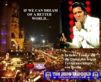Innerhalb von wenigen Minuten ist am Montagabend, dem 19. Dezember 2016, jede vorweihnachtliche Freude blankem Entsetzen gewichen: Wie in allen Medien berichtet worden ist, hat sich mitten in unserem Land ein feiger Terroranschlag ereignet. Dabei raste kurz nach 20.00 Uhr ein schwerer LKW in der Bundeshauptstadt Berlin in den Weihnachtsmarkt nahe der „Gedächtniskirche“ und verwandelte das Areal in eine Stätte blutiger Verwüstung. Die brutale Mordfahrt forderte mindestens 12 Todesopfer und etwa 50 zum Teil schwer Verletzte. Das Schreckensszenario erinnerte in grausiger Weise an eine ähnliche Gewalttat in Nizza/Frankreich im Juli 2016. Zu dem Anschlag bekannte sich noch am späten Abend gegenüber Medien in den USA die islamistische Terror-Organisation „Islamischer Staat (IS)“. Bei dem von der Polizei festgenommenen Attentäter handelte es sich offenbar um einen als ‚Flüchtling’ nach Deutschland gekommenen Pakistani, der den LKW zuvor einer Spedition aus Polen gestohlen und den polnischen Fahrer anscheinend ermordet hatte. Leitung, Redaktion und Team unseres Elvis-Fanclubs „The King’s World“ empfanden am Montagabend hilflose Schockiertheit aber auch unsagbare Wut über das Geschehen. Unsere große Trauer gilt den Opfern und unsere tiefe Anteilnahme deren Angehörigen. „If I can dream of a better world…“, sang Elvis Presley beinahe wörtlich schon vor fast 50 Jahren. Muss die im Lied „If I Can Dream“ beschworene bessere Welt, in der Frieden, Brüderlichkeit und Verständigung herrschen, ein Traum bleiben? Angesichts von religiösem Wahn und politischem Fanatismus, die immer wieder in Terror, Krieg und Unterdrückung münden, scheint es so zu sein. Zumindest zeigt der barbarische Akt gegen friedlich und stimmungsvoll feiernde Menschen in Berlin, dass der Traum unseres Elvis ohne gleichzeitige Maßnahmen entschlossener Wehrhaftigkeit gegen militante Fanatiker aller Art leider nicht mehr träumbar ist… In stiller Trauer um die Toten von Berlin möchten wir im Moment keine weiteren Worte verlieren und haben deshalb am Montagabend auf die normalen Elvis-News verzichtet. Datum: 19. Dezember 2016 – Quellen: RTL-Fernsehen, Zweites Deutsches Fernsehen (ZDF), Berliner Zeitung, The Washington Post |