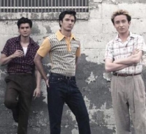 Eigentlich hatte die angekündigte und mit großem Aufwand an Original-Schauplätzen in Memphis gedrehte neue amerikanische Fernsehserie „Million Dollar Quartet“ bereits im vergangenen Monat November 2016 beim US-TV-Sender „Country Music Television (CMT)“ anlaufen sollen. Nachdem dies jedoch nicht der Fall gewesen war und immer mehr Interessierte die Frage gestellt hatten, was nun aus dem ehrgeizigen Projekt geworden ist, hat „CMT“ jetzt mitgeteilt, dass die achtteilige Reihe auf Februar 2017 verschoben worden ist. Genauer gesagt soll die erste Folge nun am 23. Februar 2017 ausgestrahlt werden. Einen Grund für die Verschiebung nannte der Sender nicht. Stattdessen aber wurde etwas überraschend mitgeteilt, dass man den Titel der Serie von „Million Dollar Quartet“ in „Sun Records“ geändert hat. Die Rolle von Elvis Presley in „Sun Records“ spielt der erst 18-jährige Drake Milligan (auf nebenstehendem Promotion-Foto in der Mitte zu sehen). Datum: 22. Dezember 2016 – Quelle: Country Music Television (CMT) |