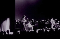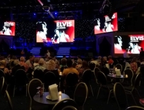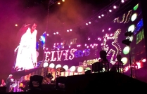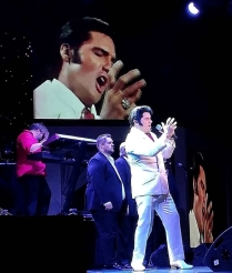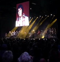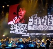 Zum nächsten Highlight der „Elvis Week 2019“ von Elvis Presley Enterprises (EPE) in Memphis ist am gestrigen 42. Todestag des King ein großes abendliches Erinnerungskonzert zum 50-jährigen Jubiläum von Elvis’ triumphalem 1969er Las Vegas-Comeback-Gastspiel geworden. Unter dem Titel „1969 50th Anniverary Concert – Elvis Returns To Vegas“ versammelten sich auf der „Graceland Soundstage“ gegenüber der Villa Graceland nahezu alle noch verfügbaren Original-Musiker und -Begleitsänger, die im Juli und August 1969 mit Elvis das Publikum im „International Hotel“ in Las Vegas im Sturm erobert hatten. Mit dabei waren die „TCB Band“-Mitglieder James Burton (Leadgitarre), Glen Hardin (Piano, war freilich erst im Januar 1970 anstelle von Larry Muhoberac in die Gruppe gekommen) und Ronnie Tutt (Schlagzeug), die „Imperials“-Sänger Jim Murray und Terry Blackwood und die „Sweet Inspirations“-Sängerin Estelle Brown (oberes Foto). Unterstützt von einigen heutigen Ergänzungsmusikern und -Vokalisten begleiteten diese Originale noch einmal Elvis live auf Videowand im Stil des bekannten „ELVIS – The Concert“-Projekts der Jahre 1997 bis 2012. Dass hierbei natürlich kein Elvis-Filmmaterial von 1969 verwendet werden konnte, weil solches zumindest in brauchbarer professioneller Form schlicht und einfach nicht existiert, tat der Darbietung keinen Abbruch: Wie viele Fans schon erwartet hatten, benutzte EPE als Ersatz Filmmaterial aus der Konzert-Dokumentation „Elvis – That’s The Way It Is“ von 1970 unter besonderer Berücksichtigung der Songs, die der King sowohl 1969 als auch 1970 in seinem Live-Programm gehabt hatte (unteres Foto). Schönes Resultat aller Bemühungen war ein beeindruckendes Konzert vor ausverkauftem Haus am Abend genau des Tages, an dem vor 42 Jahren der auf der Videowand so wundervoll agierende Entertainer von uns gegangen war! Datum: 17. August 2019 – Quellen: Elvis Presley Enterprises (EPE), Jeroen Vanderschoot |