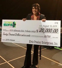 Der erst 21-jährige Elvis-Darsteller Taylor Rodriguez aus dem Ort Goode im US-Bundesstaat Virginia hat bei der laufenden „Elvis Week 2019“ zum 42. Todestag des King den „Ultimate Elvis Tribute Artist Contest“ gewonnen. Im hart umkämpften Finale auf der „Graceland Soundstage“ auf dem Gelände „Elvis Presley’ Memphis“ setzte sich Rodriguez gegenüber allen Mitbewerbern durch und siegte vor Radney Pennington aus Branson/Missouri und Cote Deonath aus Ocala/Florida. Die Plätze 4 und 5 belegten der Brasilianer Di Light und ein weiterer US-Amerikaner, nämlich Jake Slater aus Bellaire/Michigan. Taylor Rodriguez wiederum konnte den bislang größten Erfolg seiner Karriere als Elvis-Imitator kaum fassen. Der 21-Jährige hatte sich durch einen Sieg beim Vorrundenwettbewerb im Rahmen des „Tupelo Elvis Festival“ im Juni 2019 für die Endrunde des als größter Elvis-Darsteller-Wettstreit der Welt geltenden „Ultimate Elvis Tribute Artist Contest“ qualifiziert. Sein Lohn in Memphis bestand aus einem Scheck über stolze 20 000,- Dollar Siegprämie und einem Auftrittsvertrag mit Veranstalter Elvis Presley Enterprises (EPE). Nebenstehendes Foto zeigt Taylor Rodriguez mit dem symbolischen Scheck bei der Siegerehrung auf der „Graceland Soundstage“. Die „Elvis Week 2019“ indes wird in diesen Tagen mit zahlreichen Gesprächs- und Konzert-Veranstaltungen sowie der „Auction At Graceland“ fortgesetzt. Emotionaler Höhepunkt der Gedenkwoche wird wie jedes Jahr der „Candlelight Vigil“ in der Nacht auf den Todestag des King sein. Datum: 11./12. August 2019 – Quellen: Elvis Presley Enterprises (EPE), Taylor Rodriguez |