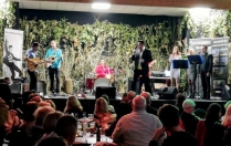 Einen wundervollen Abend mit den unvergesslichen Hits des King sowie vielen beliebten Evergreens anderer Stars haben die Besucher beim großen Event „Elvis And Other Golden Oldies“ erlebt, das wie angekündigt am vergangenen Samstag, dem 23. November 2019, in Venlo in den Niederlanden stattgefunden hat. Präsentiert vom niederländischen Top-Elvis-Interpreten Peter Ryan und seiner zauberhaften Ehefrau Monique in Zusammenarbeit mit unserem deutschen Elvis-Fanclub „The King’s World“ gab es in einem mehrteiligen Konzert Rock’n’Roll-Songs und Beat-Titel, Pop-Klassiker und Country-Lieder sowie Schmuse-Balladen aller Art aus den 50er, 60er und 70er Jahren zu hören. Nach einem Warm-Up-Auftritt der Gruppe „The PCB Sixties Band“ betrat zunächst Peter Beines von „The King’s World“ die Bühne, um die Besucher zu begrüßen, auf die enge Zusammenarbeit unseres Fanclubs mit Peter Ryan hinzuweisen und dann den Niederländer unter großem Applaus des Publikums auf die Bühne zu holen. Es folgte Peter Ryans erster Set, der den ‚rocking Fifties’ des jungen Elvis gewidmet war und Songs wie „Don’t Be Cruel“, „Teddy Bear“ und „I Need Your Love Tonight“ umfasste (oberes Foto). Der zweite Set des stimmgewaltigen und charismatischen Mannes aus Venlo fokussierte sich demgegenüber ganz auf die ‚swinging Sixties’ und beinhaltete Titel wie „Such A Night“, „Return To Sender“ und „Viva Las Vegas“. Legendäre andere Stars, die nicht nur Zeitgenossen sondern oftmals auch gute Freunde von Elvis waren, wurden indes von den Gast-Sängern Eddy Young und René Le Blanc repräsentiert. Während Young Klassiker von Frank Sinatra und Sammy Davis Jr. wie „My Way“ und „Mr. Bojangles“ darbot, begeisterte Le Blanc mit einer dynamischen Engelbert Humperdinck-Performance, die durch Lieder wie das auch von Elvis gesungene „Release Me“ fast zwangsläufig auch wieder einen Bezug zum King herstellte (mittleres Foto). Das fulminante Finale von „Elvis And Other Golden Oldies“ blieb freilich dem Headliner Peter Ryan vorbehalten. Nun waren die ‚entertaining Seventies’ des reifen Elvis an der Reihe, und mit bemerkenswert starken Darbietungen von Songs wie „Burning Love“, „The Wonder Of You“ und „My Boy“ bewies der Niederländer, dass er gegenwärtig der wohl beste Elvis-Interpret ist, den wir in Europa haben. Und als sich am Ende alle Künstler, Mitwirkenden und Organisatoren zum Gruppenbild auf der Bühne versammelten (unteres Foto), kannte der Applaus der Besucher keine Grenzen! Aber auch am Rande von „Elvis And Other Golden Oldies“ gab es einiges Sehenswertes zu entdecken. So faszinierte die Formation „The Dancing Shoes“ mit gekonnten Tanzeinlagen im Stil der 50er und 60er Jahre, während sich am Fanclub-Stand von „The King’s World“ die Besucher über die Arbeit unserer Organisation informieren konnten, was gleich mehrere Interessierte dazu nutzten, sich als neue Mitglieder in unserem Club anzumelden und die ohnehin schon große ‚Holland-Fraktion’ in unserer Gemeinschaft weiter zu stärken. Insgesamt sehr zufrieden durften die Initiatoren mit dem Publikumszuspruch der Veranstaltung sein. Fast 200 Fans hatten die stilvolle Location „Boostenhof“ in Venlo bestens gefüllt. Enttäuschend war hierbei allerdings, dass nur sehr wenige Deutsche aus den lediglich wenige Kilometer entfernten Regionen Rheinland und Westfalen den kurzen Weg ins direkt hinter der niederländischen Grenze liegende Venlo absolviert hatten, um dem mit nur 7,50 Euro Eintritt auch noch extrem preisgünstigen Event beizuwohnen. Hier wäre eine deutlich größere Akzeptanz der Deutschen wirklich wünschenswert gewesen, denn wer „Elvis And Other Golden Oldies“ verpasst hat, hat definitiv etwas sehr Erlebenswertes versäumt! Datum: 24./25. November 2019 – Quellen: TKW-Event-Team, Peter Ryan, John van Hese, Alexandra Segl |
