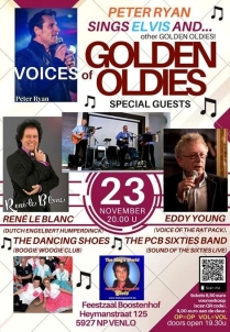 Bei dieser Veranstaltung sollten Sie unbedingt dabei sein, liebe Elvis-Fans! Am heutigen Samstagabend findet wie angekündigt in Venlo direkt an der deutsch-niederländischen Grenze das große Event „Peter Ryan Sings Elvis And Other Golden Oldies“ mit unserem Fanclub „The King’s World (TKW)“ statt. Im Mittelpunkt des Programms steht ein mehrteiliges Konzert, in dem der niederländische Top-Elvis-Interpret Peter Ryan hauptsächlich die größten Hits und beliebtesten Songs von Elvis Presley sowie außerdem einige bekannte Evergreens anderer Stars live singen wird. Zur Besetzung gehören neben Peter Ryan auch die Gruppe „The PCB Sixties Band“ sowie die Gast-Sänger René Le Blanc und Eddy Young. Die Tanz-Formation „The Dancing Shoes“ und ein gut bestückter internationaler Elvis-Fanartikel-Markt mit fairen Preisen runden das vielfältige Angebot für die Besucher der Veranstaltung ab. Das Event „Peter Ryan Sings Elvis And Other Golden Oldies“ ist zu erleben im „Zaal Boostenhof“ in der Heymanstraat 125 in 5927 Venlo/Niederlande. Die etwas mehr als 100 000 Einwohner zählende Stadt liegt unmittelbar an der deutsch-niederländischen Grenze und ist aus Deutschland über die Autobahnen A 40 (aus Richtung Dortmund/Essen/Duisburg) und A 61 (aus Richtung Mönchengladbach/Köln/Koblenz) schnell zu erreichen. Die Veranstaltung am heutigen Samstagabend beginnt um 20.00 Uhr, Einlass ist ab 19.30 Uhr. Karten zum Preis von nur 9,- Euro sind an der Abendkasse noch zu bekommen. Peter Ryan und „The King’s World“ laden alle Elvis-Fans aus den Niederlanden, aus Deutschland und aus dem auch nicht weit entfernten Belgien herzlich ein, bei „Elvis And Other Golden Oldies“ in Venlo dabei zu sein. Wir freuen uns auf Ihren Besuch! Datum: 23. November 2019 – Quellen: Peter Ryan, TKW-Event-Team |