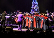 Zwei Mal ein volles Haus und eine sehr stimmungsvolle Atmosphäre hat das vorweihnachtliche „Holiday Concert Weekend At Graceland“ hervorgebracht, das Elvis Presley Enterprises (EPE) wie angekündigt am zurückliegenden Wochenende präsentiert hat. Es war die dritte Veranstaltung dieser Art seit 2017. Sie bestand aus zwei großen Live-Konzerten plus Rahmenprogramm. Bei beiden Konzerten war das Veranstaltungsgebäude „Graceland Soundstage“ auf dem Gelände „Elvis Presley’s Memphis“ gegenüber der Villa Graceland annähernd ausverkauft. Die Konzerte – zunächst das „Home For The Holidays With Elvis Concert“ mit Elvis live auf Video-Wänden und dem „Memphis Symphony Orchestra“ unter der Leitung des Briten Robin Smith (bekannt als Direktor des britischen „Royal Philharmonic Orchestra“) live auf der Bühne (oberes Foto) sowie dann das „Elvis’ Christmas Peace Concert“ mit den Weihnachts- und Gospel-Liedern der Elvis-Doppel-CD „Christmas Peace“ aus dem Jahr 2003, dargeboten von Rock-Sänger John Paul Keith, Elvis-Darsteller Drake Milligan, Elvis’ Original-Studio-Bassist Norbert Putnam, einer Rock-Band und dem stimmgewaltigen Chor „The Tennessee Mass Choir“ (unteres Foto) – schufen eine wunderbare vorweihnachtliche Stimmung in Erinnerung an den King. Im Rahmenprogramm der Konzerte bot EPE spezielle frühabendliche Sonderführungen durch die Villa Graceland an, die das Thema ‚Elvis und Weihnachten’ besonders in den Mittelpunkt stellten und von den Fans freudig und zahlreich frequentiert wurden. Datum: 20./21. Dezember 2019 – Quelle: Elvis Presley Enterprises (EPE) |
