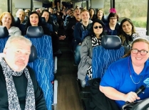 Weitere Höhepunkte der „Elvis Birthday Celebration“ von Elvis Presley Enterprises (EPE) zum 85. Geburtstag des King hielt der gestrige Freitag, 10. Januar 2020, für die vielen Tausend Fans aus aller Welt in Memphis bereit. Zunächst fand die schon seit Langem ausverkaufte „Elvis Birthday Party On Wheels“ statt, eine ganztägige Bus-Reise in Elvis’ Geburtsstadt Tupelo mit dortigem ausführlichem Besichtigungsprogramm unter Leitung von Tom Brown (oberes Foto mit Brown vorne links). Am Abend folgte dann das große „Elvis 85th Birthday Pops Concert“ im Veranstaltungsgebäude „Graceland Soundstage“ auf dem Gelände „Elvis Presley’s Memphis“ gegenüber von Graceland. Hier spielten der immer noch aktive altbekannte Top-Elvis-Interpret Terry Mike Jeffrey, seine Band und das „Memphis Symphony Orchestra“ mehr als zwei Stunden lang die größten Hits und beliebtesten Evergreens von Elvis Presley live vor einem begeisterten Publikum, das den Akteuren auf der Bühne mehrfach stehende Ovationen spendete (unteres Foto). Am heutigen Samstag wird mit einem weiteren spektakulären Konzert, und zwar der Multi Media-Show „Elvis In Concert – Live On Screen“ mit Elvis live auf Mehrfach-Videowänden sowie einer prominenten Musiker- und Chor-Besetzung live auf der Bühne, die „Elvis Birthday Celebration“ in der Heimatstadt des King ihr Finale erleben. Datum: 11. Januar 2020 – Quelle: Elvis Presley Enterprises (EPE) |