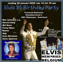 Live-Auftritte diverser Elvis-Interpreten aus den Benelux-Ländern, eine Elvis-Tombola mit wertvollen Preisen, eine Elvis-Geburtstagstorte und ein internationaler Elvis-Fanartikel-Markt – das sind die vielfältigen Programmpunkte der „Elvis 85 Birthday Party“ am heutigen Sonntag im „Feestzaal Buitenlust“ in Rijsbergen in den Niederlanden, präsentiert von drei mitteleuropäischen Elvis-Fanclubs, darunter „The King’s World (TKW)“ aus Deutschland. Dazu bringt das Event die offizielle Verabschiedung von Sylvain Vertez, dem jahrzehntelangen Präsidenten des Fanclubs „Elvis Memories Belgium“. Die „Elvis 85 Birthday Party“ beginnt um 14.00 Uhr und kostet lediglich 5,- Euro Eintritt. Wir freuen uns auf eine abwechslungsreiche nachträgliche Elvis-Geburtstagsfeier mit vielen Fans aus den Niederlanden, aus Belgien und aus dem nahen Deutschland! Datum: 26. Januar 2020 – Quellen: Fanclub „Elvis Memories Belgium“, Fanclub „The Elvis Jailhouse Rock Club“, TKW-Event-Team |