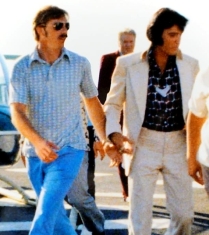 Wieder ist die Elvis-Welt um eine wichtige Person aus dem engsten Umfeld des King ärmer geworden. Am Mittwoch, dem 22. April 2020, verstarb Elvis’ langjähriger Sicherheits-Chef und enger Freund Dick Grob (oberes Foto mit seiner Frau Melissa) im Alter von 80 Jahren in seinem Haus in Las Vegas/Nevada in den USA friedlich im Schlaf. Dies hat seine Frau Melissa Grob in tiefer Trauer der Öffentlichkeit mitgeteilt. Richard (genannt „Dick“) Grob, geboren am 17. Mai 1939 in Sandusky/Ohio, war in den 60er Jahren in den amerikanischen Polizeidienst eingetreten, wo er sich recht bald auf den Tätigkeitsschwerpunkt Personen- und Objekt-Schutz spezialisiert hatte. Als Elvis Presley und seine Braut Priscilla im Mai 1967 einen Teil ihrer Flitterwochen in einem gemieteten Haus in Palm Springs/California (etwa 180 Kilometer östlich von Los Angeles gelegen) verlebten, wurde der seinerzeit für das „Palm Springs Police Department“ tätige Dick Grob von seinen Vorgesetzten damit beauftragt, vor der Villa des berühmten Paares Posten zu beziehen und für dessen Sicherheit zu sorgen. Elvis und Priscilla nahmen hiervon Notiz und versorgten den draußen in der Hitze ‚bratenden’ Polizeibeamten mit kühlen Getränken. Hieraus entwickelte sich zunächst eine gute Bekanntschaft und schließlich eine enge Freundschaft zwischen dem Entertainment-Superstar und dem ‚Police-Officer’, und als Elvis im Zuge seines triumphalen Comebacks im Sommer 1969 begann, wieder regelmäßig live aufzutreten, engagierte er Dick Grob nicht nur als einen von mehreren Leibwächtern sondern wegen seiner Berufserfahrung gleich als Chef des gesamten Sicherheitsdienstes rund um ihn. Ohne lange zu zögern, hängte Grob seine Polizei-Laufbahn an den Nagel und organisierte fortan den gesamten Schutz nicht nur von Elvis selbst sondern auch von dessen Familie und kompletter Entourage. Dies galt sowohl für die Zeiten daheim in Graceland und die privaten Unternehmungen und Urlaube des King als auch für alle beruflichen Reisen von Elvis wie die Konzert-Tourneen, die Las Vegas- und Lake Tahoe-Gastspiele und die Studio-Sessions. Filmisch anschauen kann man dies insbesondere im Dokumentar-Film „Elvis On Tour“ von 1972, beim Fernseh-Live-Konzert „Aloha From Hawaii“ von 1973 (hier speziell bei der Hubschrauber-Ankunft auf dem „Ilikai Heliport“, s mittleres Foto) und im TV-Special „Elvis In Concert“ von 1977. In der Nacht vom 15. auf den 16. August 1977 gehörte Dick Grob zu den letzten Personen, die Elvis noch lebend sahen, als beide Männer Security-Details und andere Fragen der anstehenden neuen Konzert-Tournee besprachen, die am 17. August 1977 in Portland/Maine beginnen sollte. Der Tod des King durch einen Herzinfarkt wenige Stunden später schockierte den Ex-Polizisten ebenso wie alle Anderen aus Elvis’ engster Umgebung, doch die nüchternen Fähigkeiten des Sicherheits-Spezialisten waren schon kurz darauf wieder gefragt, als Dick Grob mit dem Security-Dienst rund um Elvis’ Beerdigung beauftragt wurde. In der Folge blieb Grob auf ausdrücklichen Wunsch von Elvis’ Vater Vernon Presley als Sicherheits-Chef von Graceland angestellt. Erst nach Vernons Tod im Juni 1979 wollte Elvis Presley Enterprises (EPE) seine Dienste nicht länger in Anspruch nehmen, woraufhin Grob nach Kalifornien zurückkehrte und in verschiedenen Funktionen ins reguläre Berufsleben zurückkehrte, u. a. als freiberuflicher Sicherheitsberater. Vor allem in diesem Jahrtausend trat Dick Grob oft und gerne als Ehrengast auf Elvis-Veranstaltungen in aller Welt auf. Seine Erinnerungen an den King verarbeitete er zudem auch in zwei Büchern, nämlich zunächst in „The Elvis Conspiracy?“ schon im Jahr 1979 sowie viel später in „Elvis – Safe & Sound“ im Jahr 2017 (untere Abbildung). Nun ist trauriger Weise auch seine an Elvis erinnernde Stimme für immer verstummt. Ruhe in Frieden, Dick Grob… Datum: 23./24. April 2020 – Quellen: Melissa Grob, Sandi Miller, diverse |