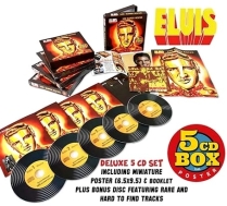 Ende August 1977 hatte die Deutschland-Niederlassung von Elvis’ damaliger Plattenfirma „RCA“ im deutschsprachigen Raum eine 7-LP-Box veröffentlicht, die unter dem Titel „Elvis – 100 Super Rocks“ einhundert rhythmische Elvis-Songs aus den Jahren von 1954 bis 1973 enthalten hatte und eine – allerdings ziemlich überstürzt wirkende – Würdigung des King unmittelbar nach seinem Tod darstellen sollte. Mit derselben Song-Zusammenstellung aber unterschiedlichen Cover-Gestaltungen war die Box auch in einigen anderen Ländern erhältlich wie Frankreich und Australien. Auf CD erschien das Schnellschuss-Produkt später nur noch in Australien, wo „RCA“/„BMG“ im Jahr 1992 die „100 Super Rocks“ als 4-CD-Box veröffentlichte. Nun hat ein ‚namenloser’ Hersteller erstmals eine inoffizielle CD-Box-Ausgabe von „Elvis – 100 Super Rocks“ auf dem Sammlermarkt herausgebracht. Das Set ist als 5-CD-Box gestaltet, wobei die Discs 1 bis 4 die einhundert Songs der historischen Original-Zusammenstellung umfassen, während Disc 5 zwanzig dieser Songs noch mal in raren aber nicht unbekannten Alternativ-Fassungen aus Studio-Sessions, Proben und Live-Konzerten präsentiert. Dargereicht worden ist das neue inoffizielle 5-CD-Set „Elvis – 100 Super Rocks“ in einer Pappbox mit Booklet und Poster-Beilage. Datum: 15. Mai 2020 – Quelle: For Elvis CD Collectors |