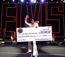 Im Mittelpunkt des Programms am zweiten Tag der „Elvis Week 2021“ in Memphis von Elvis Presley Enterprises (EPE) zum 44. Todestag des King stand am gestrigen Donnerstag, dem 12. August 2021, das Finale des diesjährigen „Ultimate Elvis Tribute Artist Contest“. Hierfür hatten sich aus dem am Vortag gelaufenen Halbfinale zehn Elvis-Darsteller qualifiziert. Als Sieger aus dem Wettstreit auf der „Graceland Soundstage“ auf dem Gelände „Elvis Presley’s Memphis“ gegenüber der Villa Graceland ging schließlich Patrick Dunn aus New York City hervor, der sich im voll besetzten restlos ausverkauften Saal über stolze 20 000,- Dollar Preisgeld freuen durfte (s. Foto des Siegers mit dem symbolischen Scheck). Hinter dem neuen Champion Patrick Dunn belegten Michael Chambliss aus Pigeon Forge/Tennessee und Cote Deonath aus Ocala/Florida die Plätze zwei und drei. Am späten Abend des Tages sorgte dann eine Aktion ganz anderer Art für riesiges Interesse der Besucher: Unter der Leitung von „Elvis Week“-Moderator Tom Brown und EPE-Archivleiterin Angie Marchese bot EPE den Fans nächtliche Sonderführungen durch die Villa Graceland an, die bereits im Vorfeld komplett ausgebucht waren. Datum: 13. August 2021 – Quelle: Elvis Presley Enterprises (EPE) |