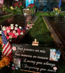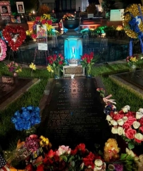 In Elvis Presleys Heimatstadt Memphis/Tennessee in den USA haben in der vergangenen Nacht viele tausend Menschen dem King of Entertainment ihre Ehre erwiesen. Beim „Candlelight Vigil“ von Elvis Presley Enterprises (EPE) pilgerte wie jedes Jahr in der Nacht auf den Todestag unseres Idols eine riesige Menschenmenge mit Kerzen in den Händen zu Elvis’ Grab im Meditationsgarten seiner Villa Graceland. Vor Beginn der stundenlangen Kerzenprozession hatten DJ Argo als Moderator, EPE-Präsident Jack Soden und Elvis’ Ex-Frau Priscilla Presley in berührenden Ansprachen die aus allen Teilen der USA angereisten Fans begrüßt und ihnen für ihr Kommen gedankt (oberes Foto). Es folgte wie gewohnt eine kurze Trauerzeremonie des traditionsreichen und alteingesessenen „Official Elvis Country Fan Club“, ehe wie immer zu den Klängen des besonderen Elvis-Songs „If I Can Dream“ von 1968 das „Music Gate“ geöffnet wurde und akustisch begleitet von vielen weiteren Balladen und Gospel-Songs des King der Trauermarsch der Fans zu Elvis’ Grab begann. Dort bot sich den ergriffenen treuen Anhängern des größten Entertainers aller Zeiten das seit über 40 Jahren gewohnte Bild ewiger Liebe und Verehrung: Die Grabstätte war wie jedes Jahr um diese Zeit wundervoll geschmückt mit unzähligen Blumen, Kränzen und Bildern (unteres Foto). Im Internet übertrugen EPE und sein Partner „Livestream“ den „Candlelight Vigil“ wie immer live. Ebenso wie immer hatte sich unser Fanclub „The King’s World (TKW)“ direkt in die Übertragung eingeklinkt, und es freute uns herzlich, dass wieder sehr, sehr viele TKW-Mitglieder und Elvis-Fans von dem Angebot Gebrauch machten und gemeinsam mit uns die bewegende Nacht der Elvis-Nächte verfolgte. Datum: 16. August 2021 – Quellen: Elvis Presley Enterprises (EPE), Livestream, Fanclub „Official Elvis Country Fan Club“ |
